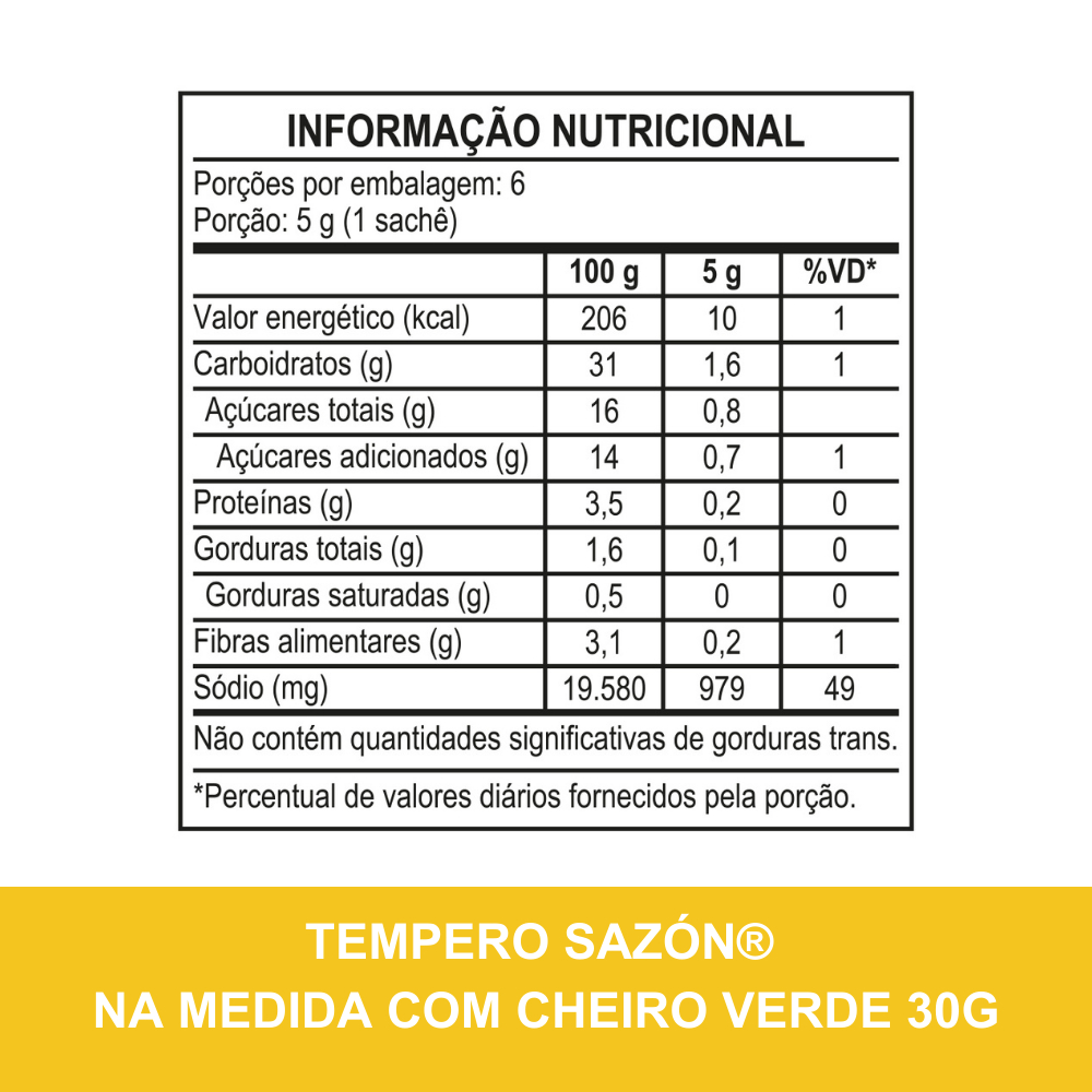 Deixe suas receitas ainda mais saborosas e práticas com o Kit Na Medida SAZÓN®! Este kit reúne os temperos perfeitos para o dia a dia, trazendo os sabores que todo mundo ama em porções na medida certa. São temperos versáteis, ideais para dar aquele toque especial em carnes, legumes, molhos e muito mais. Contém no Kit: 1x Tempero SAZÓN® Na Medida com 10 Vegetais 30g 1x Tempero SAZÓN® Na Medida com Cheiro Verde 30g 1x Tempero SAZÓN® Na Medida com Tomate 30g Destaques: - Temperos completos e prontos para usar - Realçam o sabor natural dos alimentos - Praticidade na cozinha com porções na medida certa Dica de uso: Use o SAZÓN® Na Medida para temperar carnes, frangos, legumes e molhos. Experimente combinar os três sabores e descubra novas formas de realçar suas receitas do dia a dia! Informações Técnicas: Linha: SAZÓN® Na Medida Sabores: 10 Vegetais, Cheiro Verde e Tomate