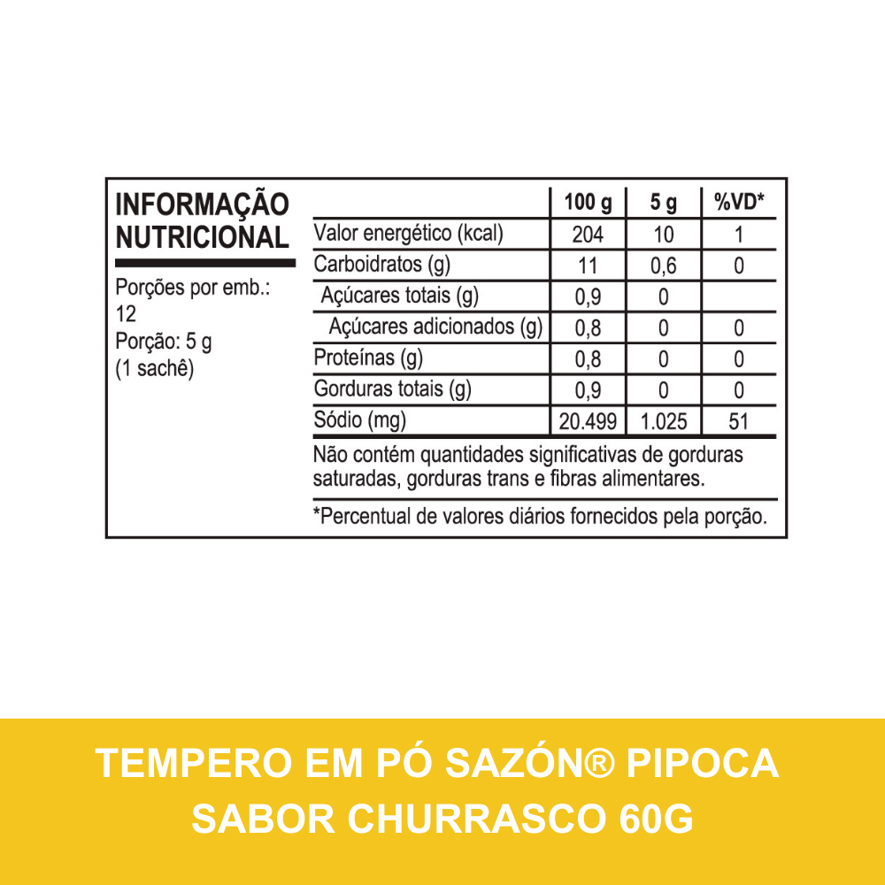Deixe sua pipoca ainda mais deliciosa com o Kit SAZÓN® Pipoca Ajinomoto! Este kit reúne três sabores incríveis de temperos para deixar seus momentos de cinema muito mais gostosos. Práticos e cheios de sabor, os temperos SAZÓN® Pipoca são perfeitos para dar aquele toque especial às suas receitas e lanches do dia a dia. Contém no Kit: 1x Tempero em Pó SAZÓN® Pipoca Sabor Manteiga 60g 1x Tempero em Pó SAZÓN® Pipoca Sabor Churrasco 60g 1x Tempero em Pó SAZÓN® Pipoca Sabor Cebola e Salsa 60g Destaques: - Temperos prontos para usar, com sabores irresistíveis - Ideais para pipocas, batatas e lanches em geral - Praticidade e sabor em cada sachê Dica de uso: Prepare sua pipoca normalmente e, ainda quente, polvilhe o seu sabor preferido de SAZÓN® Pipoca. Agite bem para espalhar o tempero e aproveite um lanche delicioso e cheio de sabor!