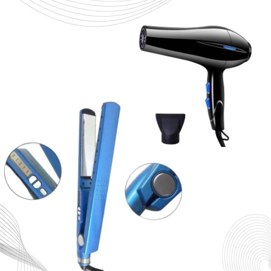 Kit Secador de Cabelo 3200w + Prancha Chapinha Nano Titanium