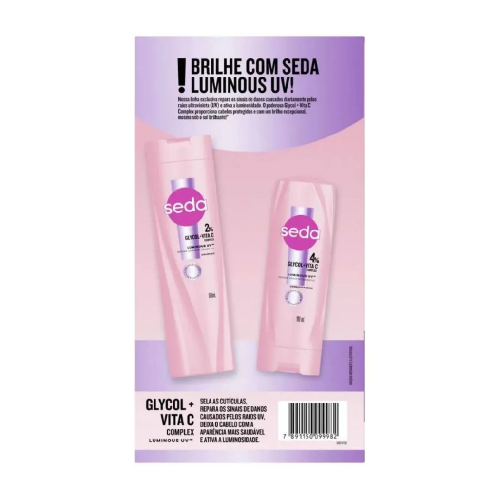 | Kit Seda Luminous Uv Shampoo 300ml + Condicionador 190ml este produto | R$ 30,99 | 24% | 5.0/5 | 4 |