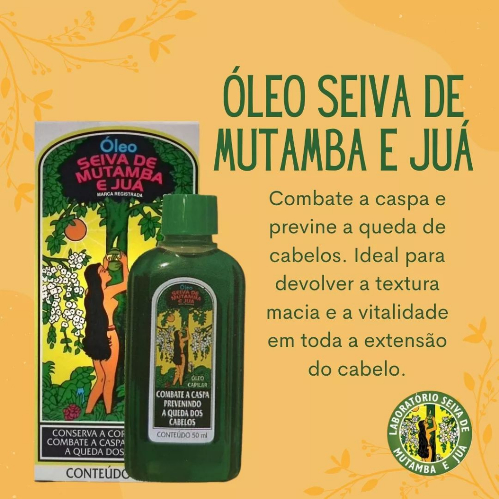 Somos o iSalão, Fazemos parte de um grupo com muitos anos no mercado de perfumaria. Garantimos a procedência de tudo que vendemos. Pode confiar. Este kit contém: 01 SHAMPOS ANTI CASPA SEIVA DE MUTAMBA 200ML 01 CONDICIONADOR SEIVA DE MUTAMBA 200ML 01 BRILHANTINA 45G 01 ÓLEO TRADICIONAL 50ML 01 CREME DE MASSAGEM 210G 01 CREME DE PENTEAR SHAMPOO ANTI CASPA SEIVA DE MUTAMBA E JUÁ Combate a caspa prevenindo a queda dos cabelos. Contém Mutamba e Juá produtos naturais da nossa flora que acabam com os fungos da caspa evitando assim a queda dos cabelos. Torna seus cabelos macios, soltos e com Condicionador Seiva de Mutamba e Juá É indicado para cabelos que utliizam shampoos anti caspa e anti queda, evita o ressecamento provocado pela fórmula ativa destes shampoos. sua fórmula é feita com componentes da natureza a MUTAMBA e JUÁ que atuam dando a proteção e a suavidade que os cabelos necessitam e que perderam pela ação dos shampoos anti caspa e anti queda." O Óleo Seiva De Mutamba E Juá 50ml conserva a cor, fortalece, combate a caspa e previne a queda de cabelos. Ideal para devolver a textura macia e a vitalidade em toda a extensão do cabelo. BRILHANTINA SEIVA DE MUTAMBA E JUÁ Fortalece os cabelos, evita o ressecamento e dá brilho, usada para pentear e modelar os cabelos. Apresentação Pote com 45g. Composição Com Mutamba e Juá, com vitamina E, base vaselina. Creme de massagem capilar seiva de mutamba 210g. Hidrata os cabelos, ativa o crescimento, previne a caspa e a queda, Contém: Lanolina, Proteina, Mutamba e Juá, com enxague."
