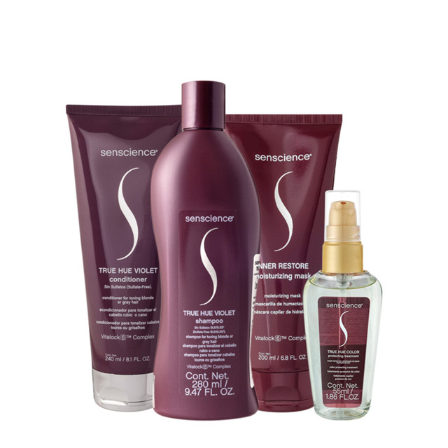Kit Senscience True Hue Violet Shampoo Condicionador Máscara 200 e Óleo (4 produtos)