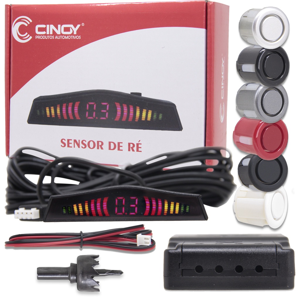 Sensor de Ré Estacionamento 4 Pontos Sensores Universal Display Preto Fosco Branco Prata Vermelho Grafite Cores LED Digital Kit Aviso Sinal Sonoro 18.5mm Por que adquirir este produto com a Loja do Som e Acessórios? • Todos os produtos à pronta entrega • Produtos de qualidade garantida • Equipe de atendimento especializada • Envio em 24 horas após o pagamento • Compra com segurança e credibilidade • No mercado há mais de 10 anos • Produtos com garantia e nota fiscal Com estes sensores de estacionamento você terá muito mais conforto, praticidade e segurança ao estacionar. Este equipamento serve para facilitar a manobra de estacionamento em locais com mais dificuldade. — Operam normalmente em qualquer condição climática. O sistema ativa automaticamente ao engatar a Ré com identificação de obstrução (esquerda e direita) O display serve para mostrar qual sensor está quebrado, ou se um não funciona ao iniciar. Também nos mostra a exata precisão de distância entre veículos e obstáculos através dos sensores ultrassônicos. [CARACTERÍSTICAS / ESPECIFICAÇÕES TÉCNICAS] • Marca: Cinoy • Cor: "SELECIONE NAS VARIAÇÕES DO ANÚNCIO - Preto, Branco, Grafite, Preto Fosco, Prata e Vermelho" PS: Os sensores podem ser pintados na cor do seu veículo.+ • Alimentação: 12 Volts • Consumo: 4 Watts • Tensão de Trabalho: DC9V - 18V • Corrente de Alimentação: 20mA 200mA • Distância da captação: 0.3 - 1.8m • Frequência do ultrassom: 40KHZ • Temperatura de trabalho: -30C -+ 80C [MEDIDAS] • Display - em centímetros - (8 x 3,5 x 1,5) - Fio com aproximadamente 5 Metros • Sensores - em centímetros - (diâmetro 1,8cm) - Fio com aproximadamente 2,5 Metros • Central - em centímetros - (7,2 x 5 x 2,2) [CONTEÚDO DA EMBALAGEM] • 4 Sensores (COR DE ACORDO COM SUA ESCOLHA) • 1 Display Digital • 1 Central • 1 Serra Copo (para fazer o furo que encaixa os sensores) IMPORTANTE: A Loja do Som e Acessórios recomenda que a instalação seja feita por profissional especializado e não se responsabiliza pelo mau uso do produto. [DÚVIDAS FREQUENTES] • Como funciona a garantia? R: Nossos produtos têm uma etiqueta de garantia para nosso controle interno, com essa etiqueta verificamos se o produto é nosso mesmo, portanto NÃO tire a etiqueta do produto. • O produto está disponível a pronta entrega? R: Sim, todos os nossos produtos estão no nosso estoque preparado para ser embalado e enviado pra você! • Caso haja qualquer dúvida sobre o seu pedido/produto entre em seu pedido e nos envie uma mensagem, estaremos à sua disposição.