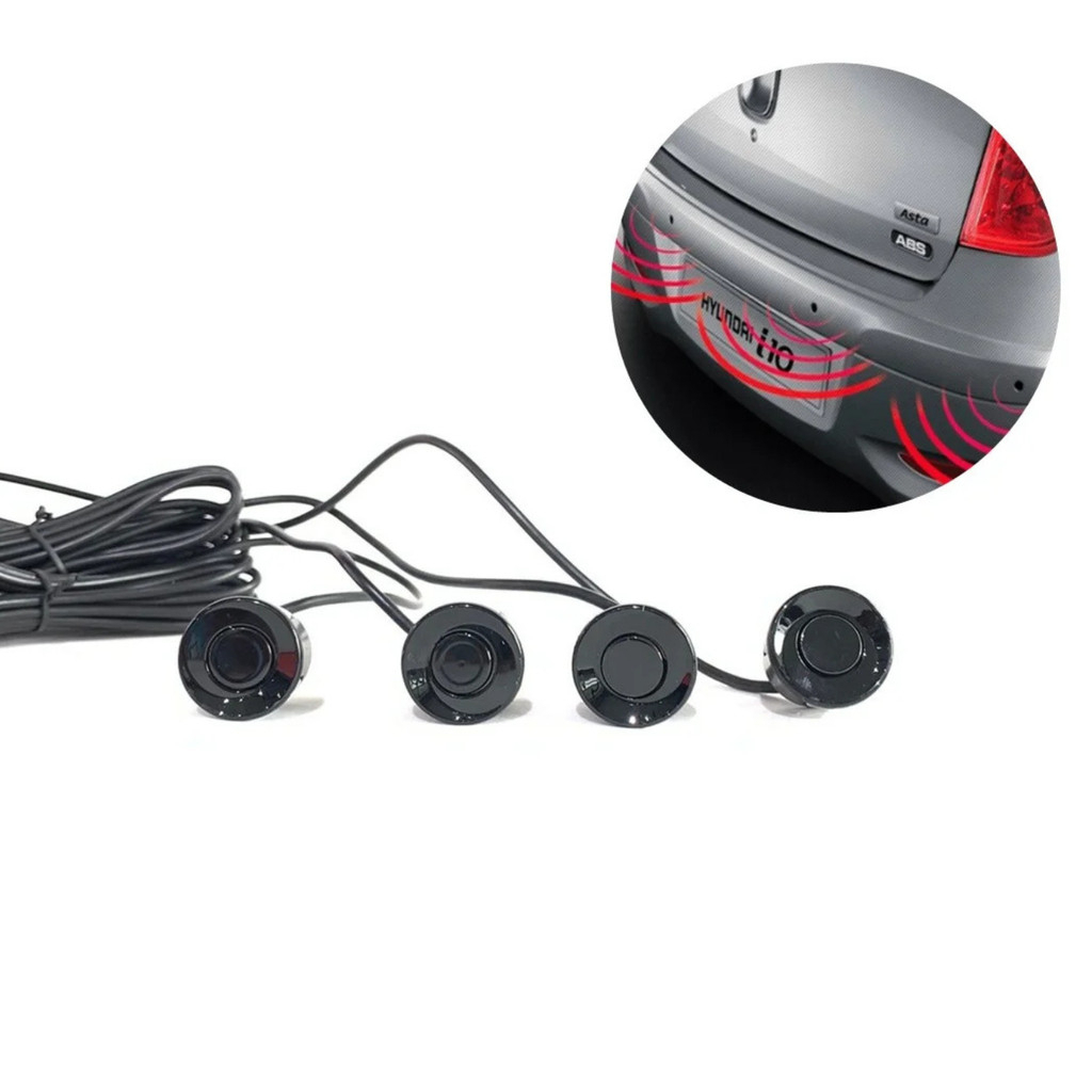 Kit Sensor de Estacionamento Ré 4 Pontos Display LED Colorido Universal 18mm 20mm Aviso Sonoro
