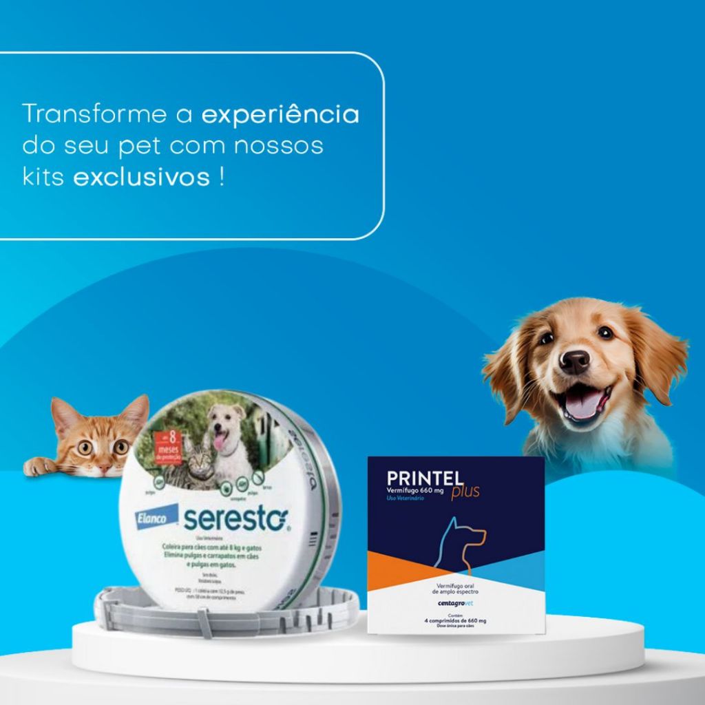 Kit Seresto Coleira Antipulgas Cães até 8kg + Vermífugo Printel Plus 4 Comprimidos