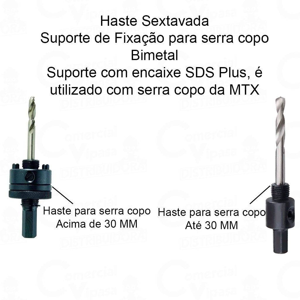 COMERCIAL VIPASA DISTRIBUIDORA. Kit Serra Copo Bimetal + Haste Sextavada Com Broca Guia Furadeira Parafusadeira Medidas A Escolha NÃO É UM KIT COM TODAS AS MEDIDAS. ANÚNCIO DE VARIAÇÃO SE VC COMPRAR UM SERRA COPO DE 25MM VAI LEVAR TAMBÉM A HASTE SEXTAVADA. SE COMPRAR UM SERRA COPO DE 60MM VAI LEVAR TAMBÉM A HASTE SEXTAVADA. Kit Serra Copo Bimetal + Haste Sextavada Para Furadeira Parafusadeira Várias Medidas A Escolha Top Kit Serra Copo Aço Rápido Bimetal 22 A 114mm + Haste Sextavada Bimetal Para Furadeira Parafusadeira Kit Jogo Serra Copo Aço Rápido Bimetal 22 mm A 114 mm com Haste Sextavada Bimetal Mtx - Serra Copo feito de Aço Carbono Parte de corte feito de aço rápido para maior produtividade. Partes de serra copo está conectado com solda elétrica de alta tecnologia, e isso dar maior produtividade e dureza durante o processo de furação de qualquer material - Haste Sextavada Suporte de fixação para serra copo bimetal Suporte com encaixe SDS PLUS, é utilizado com serra copo MTX de 14 MM a 30 MM Projetado para perfuração em materiais bimetálicos - Haste Sextavada Suporte de Fixação para Serra copo Bimetal Suporte com encaixe SDS PLUS, é utilizado com serra copo MTX Acima de 30 MM Projetado para perfuração em materiais bimetálicos Tamanhos de Serra copo: - 22 MM - 25 MM - 32 MM - 38 MM - 41 MM - 51 MM - 60 MM - 102 MM - 105 MM - 114 MM Kit Serra Copo Bimetal com Haste Sextavada para Furadeira e Parafusadeira – Várias Medidas – Top O Kit Serra Copo Bimetal com Haste Sextavada é a solução ideal para cortes precisos e limpos em diversos materiais, como madeira, MDF, metais finos, plásticos, gesso acartonado (drywall), PVC e muito mais. Disponível em diversas medidas à sua escolha, o kit acompanha haste sextavada com broca guia, que proporciona maior estabilidade e precisão durante a furação, evitando deslocamentos indesejados e facilitando o início do corte. As serras copo são confeccionadas em aço bimetálico de alta resistência, o que garante maior durabilidade, alto desempenho e menor desgaste da lâmina mesmo em aplicações contínuas. Compatíveis com furadeiras e parafusadeiras elétricas, os modelos disponíveis atendem a diversas necessidades, desde instalações elétricas até encaixes de tubos, canoplas e caixas de passagem. Características do Produto Produto: Kit Serra Copo + Haste com broca guia Marca: Top Tipo: Bimetal Acompanha: 1 Serra copo no tamanho escolhido 1 haste com encaixe sextavado e broca guia Compatível com: Furadeiras e parafusadeiras elétricas Ideal para: Madeira, MDF, compensado, PVC, drywall, alumínio fino, plásticos e metais leves Corte preciso, rápido e com acabamento limpo Broca guia central garante mais controle e evita deslizamento Tamanhos Disponíveis de Serra Copo 22 mm 25 mm 32 mm 38 mm 41 mm 51 mm 60 mm 102 mm 105 mm 114 mm Especificações Técnicas Material da serra copo: Aço bimetal (alta resistência ao desgaste) Tipo de haste: Encaixe sextavado com broca central Diâmetro da broca guia: Aproximadamente 6 mm Profundidade de corte: Aproximadamente 25 a 35 mm (varia conforme modelo) Peso aproximado (conjunto): De 150g a 400g, conforme o tamanho da serra Indicações de Uso Instalação de spots, luminárias, conduítes, caixas de passagem e tubulações Trabalhos em marcenaria, elétrica, hidráulica e reformas em geral Pode ser utilizada em painéis, divisórias, tampos de móveis, forros e chapas finas Kit serra copo com haste sextavada Serra copo bimetal várias medidas Furadeira serra copo para madeira e metal Serra copo com broca guia central Serra copo para drywall, PVC, alumínio Kit serra copo Top 22 a 114 mm Acessório furadeira serra copo com haste Kit Serra Copo Bimetal + Haste Sextavada p/ Furadeira Vários Tamanhos Top Serra Copo Bimetálica com Haste Guia 22 a 114mm p/ Furadeira e Parafusadeira Kit Serra Copo Bimetal p/ Madeira, Metal, PVC + Broca Guia – Escolha o Tamanho COMERCIAL VIPASA DISTRIBUIDORA.