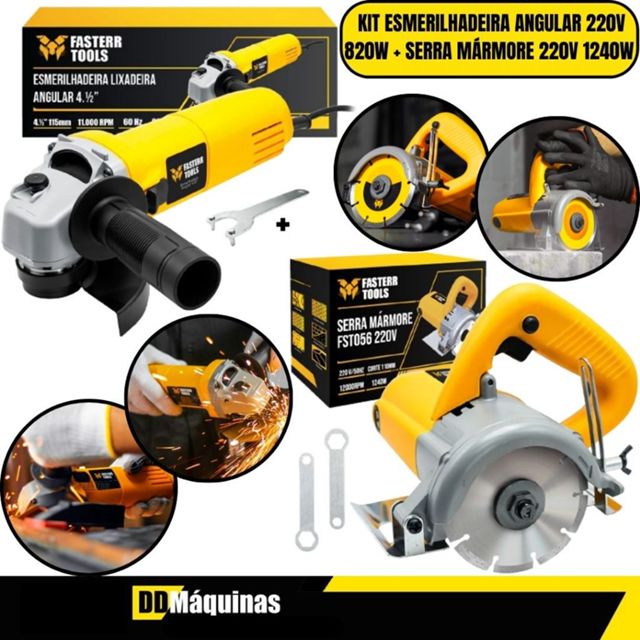 Kit Serra Mármore 4.3/8" 110mm 1240W 220V FST056 + Esmerilhadeira Angular 220V 820W FST044 - Fasterr