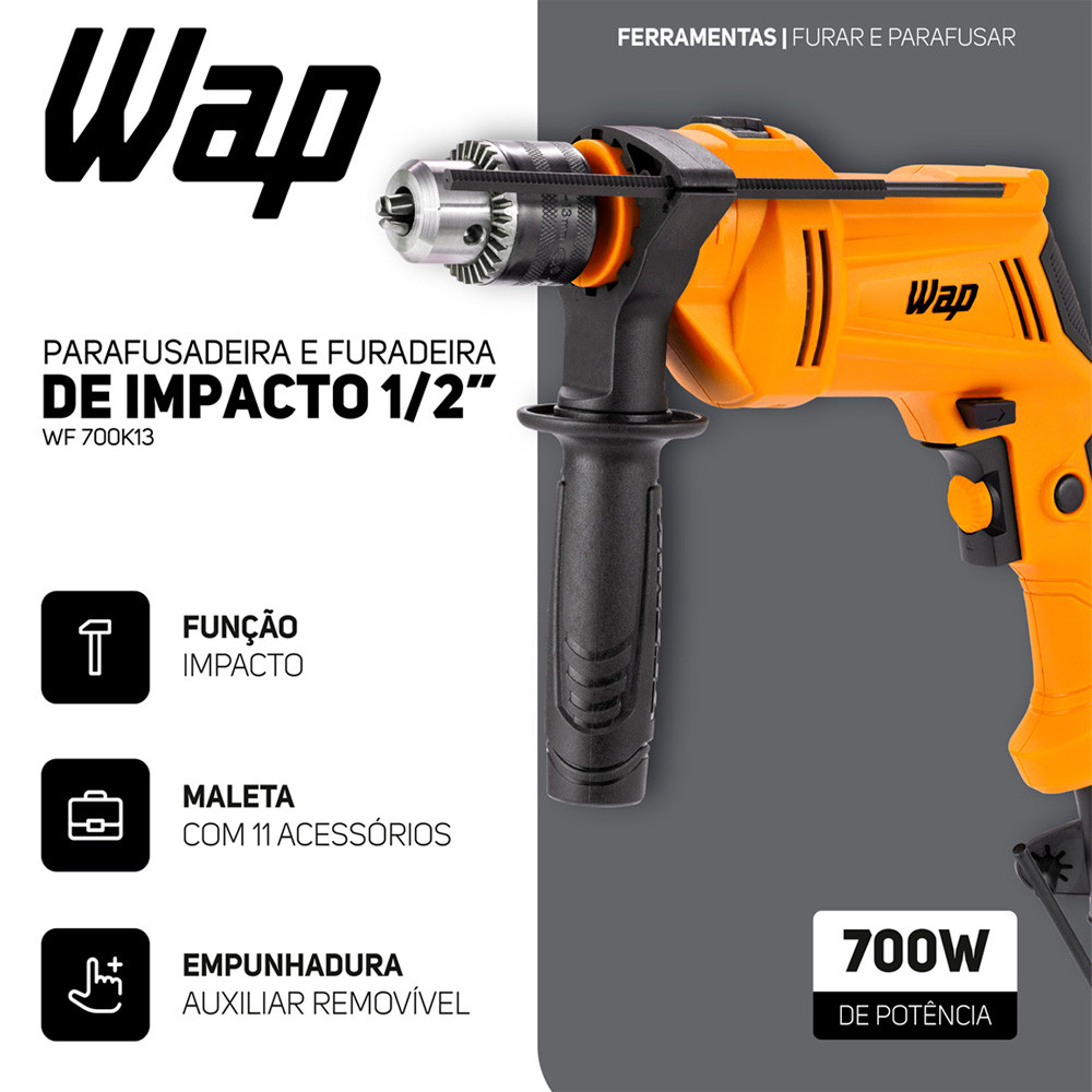 Kit Serralheira Parafusadeira e Furadeira de Impacto 700W WF700K13 Serra Tico Tico 400W