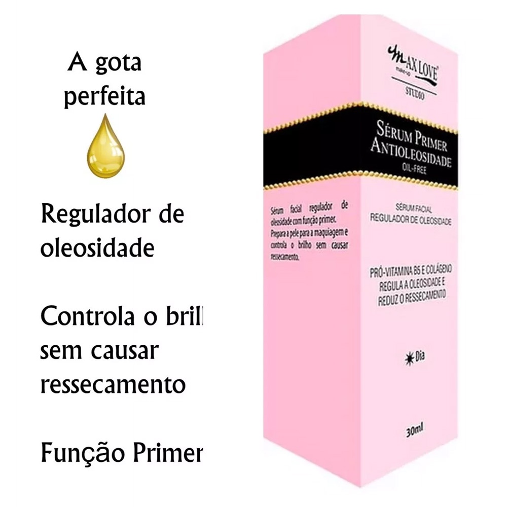 Revolucione sua rotina de cuidados com a pele! O Kit Sérum Dia e Noite Max Love foi especialmente desenvolvido para atender às necessidades de todos os tipos de pele, proporcionando hidratação, controle da oleosidade e preparação perfeita para a maquiagem. Por que escolher o Kit Sérum Max Love? Rotina Completa: Cuide da sua pele em todos os momentos do dia, com produtos específicos para cada necessidade. Equilíbrio Perfeito: Combate a oleosidade excessiva e garante a hidratação ideal, deixando sua pele equilibrada e saudável. Maquiagem Impecável: Crie uma base perfeita para sua maquiagem, com maior fixação e acabamento impecável. Ingredientes Nutritivos: Enriquecido com Pró-Vitamina B5 e Colágeno, que ajudam a fortalecer a barreira cutânea e promover a renovação celular. Resultados Visíveis: Pele mais radiante, macia e com aparência mais jovem. Benefícios de cada sérum: Sérum Primer Antioleosidade Dia: Controla a oleosidade, prepara a pele para a maquiagem e hidrata sem pesar. Sérum Primer Hidratante Noite: Repõe a umidade da pele durante o sono, acalma e regenera. Para quem é indicado: Ideal para todos os tipos de pele, especialmente para quem busca controlar a oleosidade e garantir uma hidratação equilibrada. Como usar: Limpe e tonifique a pele antes de aplicar o sérum. Aplique algumas gotas do sérum dia pela manhã e do sérum noite antes de dormir, massageando suavemente o rosto. Finalize com seu hidratante e protetor solar (durante o dia). Resultados: Pele mais saudável: Com aparência mais uniforme e radiante. Poros menos visíveis: Controle da oleosidade e redução do brilho. Maquiagem impecável: Base perfeita para uma maquiagem duradoura. Invista em sua pele com o Kit Sérum Dia e Noite Max Love e descubra uma nova rotina de cuidados que te fará apaixonar por sua pele!