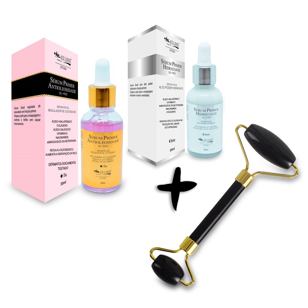 Kit Sérum facial 2 + Rolinho Pedra Jade Sérum Rosa Mosqueta Sérum Dia e Noite