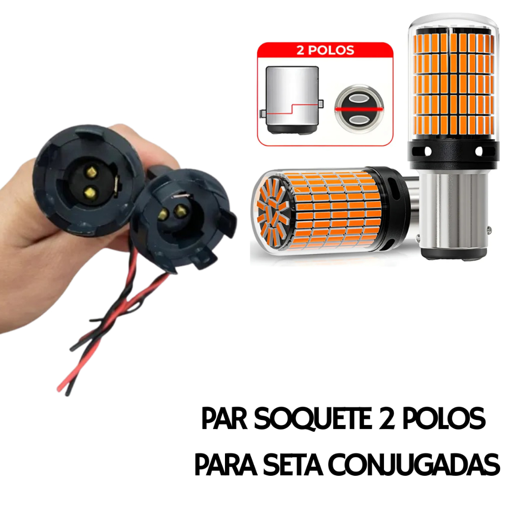 ENVIOS DIARIOS PELA AUTO STORE KIT CONJUGADAS ACOMPANHA PAR SOQUETE 2 POLOS PAR SETA 144LEDS 2 POLOS Lâmpada LED Automotiva – Alta Potência, Canbus Integrado e Longa Durabilidade. Solicite na variação a cor e o polo desejado. Após a compra, confirme no chat o seu pedido. Esta lâmpada LED oferece alta tecnologia, iluminação superior e excelente desempenho para setas, ré e freio, garantindo muito mais segurança e visibilidade. Compatibilidade CANBUS A lâmpada possui resistência Canbus integrada, reduzindo códigos de erro e hyper flash em cerca de 95% dos veículos. Caso a lâmpada não acenda, pisque, apague após alguns segundos, apresente erro no painel, interfira no rádio ou permaneça levemente acesa com o carro desligado, será necessário o uso de resistor ou decodificador. Isso não indica defeito. Teste de Funcionamento Para verificar se a lâmpada está funcionando corretamente, conecte-a diretamente a uma fonte DC 12V sem passar pelo módulo eletrônico do carro. Uso Recomendado Por ser uma lâmpada de superpotência e gerar maior calor, ela deve ser usada somente em setas, luz de ré e luz de freio. Não é indicada para faróis, milhas, DRL ou funções de uso contínuo. Destaques do Produto Iluminação 360°, 150 LEDs CSP de alta luminosidade, corpo em alumínio de aviação com excelente dissipação de calor, vida útil aproximada de 50.000 horas, driver IC integrado, instalação plug and play e baixo consumo de energia. Especificações Técnicas Tensão: DC12V Corrente: 1,75A / 0,75A Versões CSP com 22W Luminosidade: 2800 LM LEDs: 144 SMD 3014 Cor: Laranja Compatibilidade: Base 2 polos Vida útil: Até 50.000 horas