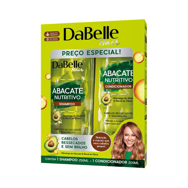 | Kit Shampoo 250ml e Condicionador 175ml Abacate Nutritivo Dabelle este produto | R$ 26,99 | 23% | 4.9/5 | 155 |