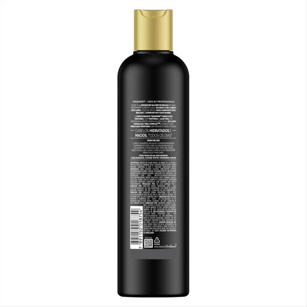 O Kit Contém: 1 Shampoo TRESemmé Hidratação Profunda 400ml. 1 Condicionador TRESemmé Hidratação Profunda 400ml. Shampoo TRESemmé Hidratação Profunda 400ml. - O novo Shampoo TRESemmé Hidratação Profunda hidrata e restaura a maciez dos fios, sem deixar o cabelo pesado. - Foi profissionalmente desenvolvido com Fórmula Micelar que, por meio de moléculas inteligentes, remove as impurezas de maneira delicada e eficaz, sem danificar os fios. - Sua fórmula é enriquecida com Pantenol e Aloe Vera, ingredientes conhecidos por suas propriedades hidratantes. - A linha TRESemmé Hidratação Profunda é ideal para todos os tipos de cabelo que precisam de um boost de hidratação e maciez. - O Shampoo TRESemmé Hidratação Profunda pode ser usado todos os dias e recomenda-se o uso da linha completa para atingir melhores resultados. - Desde sua origem em salões de beleza em 1948, TRESemmé® acredita que, quando o seu cabelo está lindo, você se sente mais confiante para brilhar e conquistar o que quiser. Condicionador TRESemmé Hidratação Profunda 400ml. - O novo Condicionador TRESemmé Hidratação Profunda hidrata e restaura a maciez dos fios, sem deixar o cabelo pesado. - Foi profissionalmente desenvolvido com a exclusiva tecnologia TRES-ComplexTM que desembaraça os fios facilmente e ajuda a controlar o frizz. - Sua fórmula é enriquecida com Pantenol e Aloe Vera, ingredientes conhecidos por suas propriedades hidratantes. - A linha TRESemmé Hidratação Profunda é ideal para todos os tipos de cabelo que precisam de um boost de hidratação e maciez. - O Condicionador TRESemmé Hidratação Profunda pode ser usado todos os dias e recomenda-se o uso da linha completa para atingir melhores resultados. - Indicado para todos os tipos de cabelo. * Compre Produtos TRESemmé.