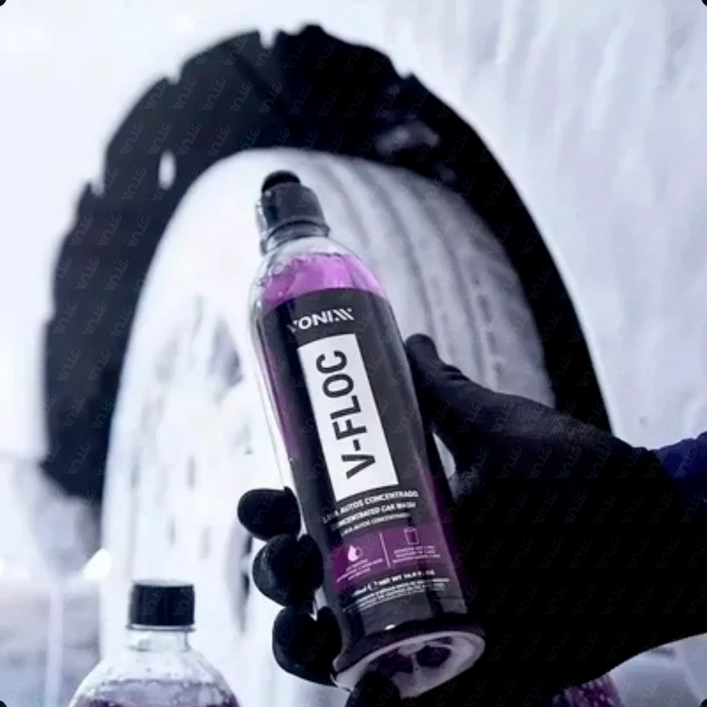Kit Shampoo Automotivo Esfregação Neutro V-floc V-mol Vonixx - V-FLOC 500ML VONIXX DESCRIÇÃO: V-FLOC é um lava autos de alta performance e de pH neutro. Contém agentes condicionadores e tensoativos especiais que proporcionam uma lavagem suave e eficiente. Tem alto grau de lubrificação, promovendo redução significativa do coeficiente de atrito e um melhor deslize da luva de microfibra, reduzindo as chances de microrriscos na pintura. Além disso, promove brilho e aspecto de renovação. DILUIÇÃO: 1:20 – Uso na Snow Foam 1:400 – Lavagem comum com balde MODO DE USO: 1- Realizar a pré-lavagem do veículo para retirada do excesso de sujeira; 2- Diluir aproximadamente 10ml de V-FLOC em 4 litros de água; Ajustar a quantidade de produto de acordo com o nível de sujeira; 3- Iniciar a lavagem com o auxílio de Luva de Microfibra, começando pela parte superior do veículo; 4- Mergulhar a luva na solução e esfregar suavemente, até completar todo o veículo; 5- Enxaguar até a retirada de todo o produto; 6- Utilizar a Toalha de Secagem para finalizar. - V-MOL 500ML VONIXX DESCRIÇÃO: V-Mol é um lava autos biodegradável com pH levemente básico que não agride a superfície. Ideal para lavagem de automóveis, eficaz na remoção de sujeiras mais difíceis, como barro e óleo. MODO DE USO: 1- Diluir o produto na proporção indicada; 2- Iniciar a lavagem com o auxílio de uma luva de microfibra, começando pelas partes superiores do veículo; 3- Mergulhar a luva na solução e esfregar suavemente até completar o veículo; 4- Enxaguar até a retirada de todo o produto; 5- Secar o veículo por completo para evitar manchas.