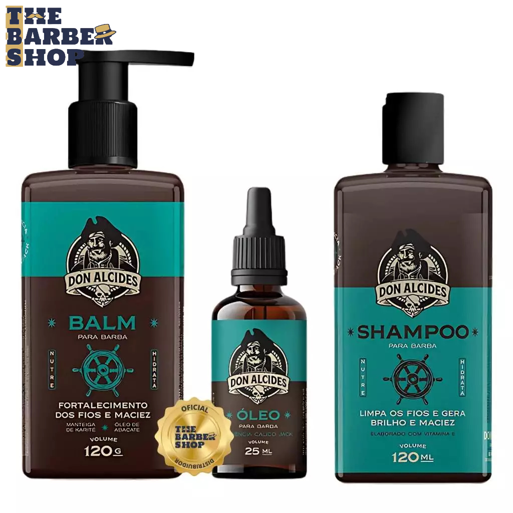 | Kit Shampoo + Balm + Óleo para Barba Don Alcides Calico Jack este produto | R$ 174,71 | 8% | 4.9/5 | 1 |