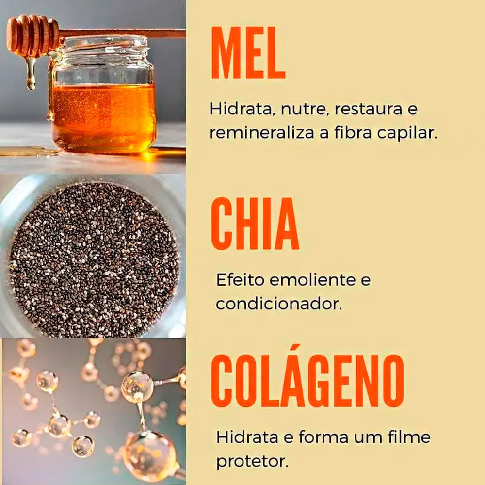 O Kit Shampoo Condicionador Bio Extratus Mel 1 Litro proporciona tratamento imediato para cabelos porosos e também preenche as falhas da fibra capilar. O mel, chia e colágeno juntos, repõem a umidade que os fios perdem naturalmente, a massa e nutrientes. Além disso, é livre de corantes e parabenos. Sendo assim, proporciona um tratamento que trás resultados incríveis para o seu cabelo pois hidrata intensamente, nutri e preencher os fios. Benefícios: - Intensa hidratação; - Nutrição; - Preenchimento das falhas capilares.
