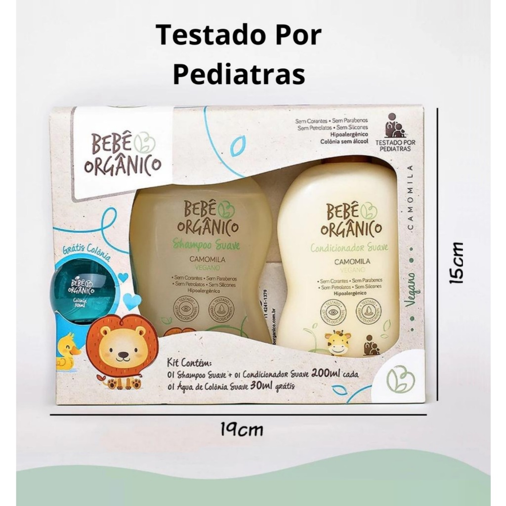 Kit Shampoo + Condicionador + Colônia Sem Álcool + Loção Hidratante - Cuidado Natural Bebê - 630ml Recém Nascido, Infantil, Bebê Orgânico. Proporcione ao seu bebê o melhor do cuidado natural com o nosso kit exclusivo! Composto por Shampoo, Condicionador, Colônia sem álcool e Loção Hidratante, este conjunto completo oferece limpeza suave, hidratação intensa e um toque de frescor delicado, ideal para peles sensíveis. Dermatologicamente testados e livres de parabenos e sulfatos, os produtos foram desenvolvidos com ingredientes naturais, garantindo segurança e conforto. São 630ml de pura qualidade e carinho para cuidar do seu bebê com amor e segurança em cada banho. Shampoo Bebê Orgânico 200 ml Desenvolvido com ingredientes naturais e orgânicos, o Shampoo Bebê Orgânico é suave e seguro para o uso diário no couro cabeludo sensível do bebê. Livre de sulfatos e parabenos, limpa delicadamente os fios sem ressecar, deixando-os macios e perfumados. Ideal para proteger e fortalecer os primeiros cabelos do seu bebê, enquanto respeita o pH natural da pele. Condicionador Bebê Orgânico 200 ml O Condicionador Bebê Orgânico desembaraça e hidrata suavemente os cabelos finos e delicados dos bebês. Com uma fórmula rica em óleos naturais e manteigas vegetais, proporciona maciez, brilho e facilidade ao pentear, sem agredir o couro cabeludo. Perfeito para manter os cabelos saudáveis, macios e protegidos desde cedo. Colônia Bebê Orgânico 30 ml A colônia sem álcool completa o kit, deixando um suave perfume no bebê, sem agredir a pele sensível. Sua fragrância delicada e suave é perfeita para deixar o bebê cheiroso e confortável ao longo do dia. Loção Hidratante Bebê Orgânico 200 ml A Loção Hidratante Bebê Orgânico foi criada para hidratar profundamente a pele delicada do bebê, mantendo-a macia e saudável. Formulada com extratos botânicos e óleos naturais, essa loção nutre e protege contra o ressecamento, sem deixar a pele oleosa. Ideal para uso após o banho ou sempre que a pele precisar de hidratação extra. Benefícios: * Hipoalergênico * Sem Parabenos * Sem Corantes * Sem Petrolatos * Sem Silicones O que vem no Kit: 1 - Shampoo - 200 ml 1 - Condicionador - 200 ml 1 - Colônia - 30 ml 1 - Loção Hidratante - 200 ml - Total do Kit 630ml Esses produtos são feitos com amor, respeitando a pele sensível dos pequenos e o meio ambiente. São 630ml de pura qualidade e carinho para cuidar do seu bebê com amor e segurança em cada banho. A ABC E-Pronto se preocupa em como você irá receber o seu pedido, por isso temos um cuidado especial no acondicionamento de seu produto, com um processo de embalagem super cuidadoso. Envio Imediato