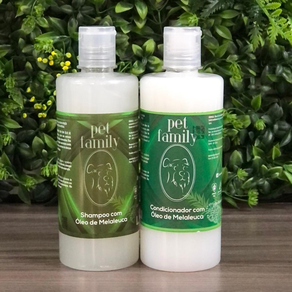 Banho completo e natural para peles sensíveis! O Kit Pet Family Óleo de Melaleuca é a escolha perfeita para tutores que se preocupam com o bem-estar da pele do pet. Indicado para cães com sensibilidade, coceiras e dermatites, oferece um cuidado profissional, calmante e seguro. O que vem no kit: 1 Shampoo 500ml com Óleo de Melaleuca 1 Condicionador 500ml com Óleo de Melaleuca Benefícios: Calmante natural: alivia coceiras e irritações Auxilia no cuidado de peles com hipersensibilidade Propriedades antifúngicas e antibacterianas Hidrata, limpa e amacia sem agredir a pele Fórmula suave, sem sal, corantes ou alergênicos pH ideal para a pele do pet Aroma leve, natureza no banho Produto vegano, seguro e profissional: 100% livre de crueldade animal Sem derivados de petróleo Aprovado por veterinários Usado em banhos e tosa profissionais Fabricado por empresa com mais de 20 anos de experiência Validade: 24 meses após fabricação ️ Por ser um produto natural, a tonalidade pode variar Indicado para cães de todas as raças a partir de 2 meses de idade Pedidos feitos em dia útil até as 13h são postados no mesmo dia! Dúvidas? Fale com a gente no chat! Perito Pet Store: o banho que respeita a natureza do seu pet!