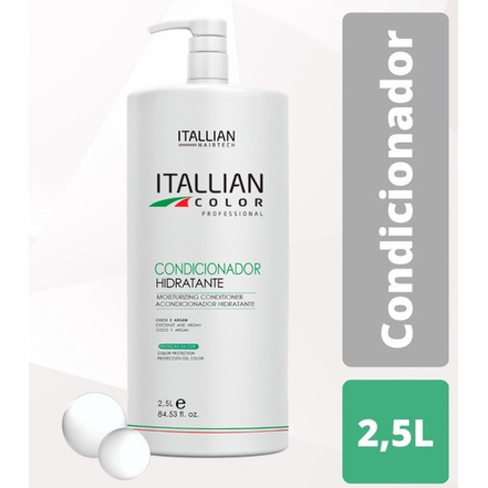 Shampoo Hidratante Itallian Color de 2.5 litros para lavatórios, rende mais de 180 aplicações. Proteção contra ressecamento, nutrição profunda da fibra capilar, controle de frizz, hidratação, brilho, maciez, umectação e emoliência aos fios. Condicionador Hidratante Itallian Color de 2.5 litros para lavatórios, rende mais de 180 aplicações. Contra ressecamento, evita pontas duplas, nutri profundamente a fibra capilar, controla frizz, hidrata, dá brilho, maciez, umectação e emoliência. Possui efeito de toque sedoso. Ativos: Blend de Óleos: Mix de 12 óleos preciosos obtidos a partir de nozes, sementes, ervas e frutos (Coco, Argan, Noz de Karité, Semente de Algodão, Macadâmia, Chá Verde, Camomila, Aloe Vera, Cálamo, Mirra, Oliva e Canela). Protege os fios contra o ressecamento Proporciona nutrição avançada das camadas mais profundas da fibra capilar Disciplina e controla o frizz Proteína da Seda: É extraída das fibras puras da seda sob condições extremamente controladas. Estas fibras naturais são constituídas por estruturas denominadas fibroínas, que são revestidas de sericina. As fibroínas são ricas em aminoácidos (glicina, alanina, tirosina e serina), que fazem parte da composição da fibra capilar. Brilho acentuado Umectação e emoliência aos fios Pantenol: Agente condicionante também conhecido como Pró-Vitamina B5. Auxilia na retenção de umidade dos fios Evita a formação de pontas duplas Confere brilho e maciez Silicones: Combinação de silicones multifuncionais e com grande afinidade pela fibra capilar. Espalha-se facilmente sobre os fios Possui toque sedoso, não oleoso e não pegajoso Modo de Uso: Após lavar os cabelos com o Shampoo Hidratante Itallian Color, aplique o Condicionador Hidratante Itallian Color do comprimento às pontas. Deixe agir por alguns minutos e enxágue. Contém: 01 Shampoo Hidratante Lavatório Itallian Color Professional 2,5L 01 Condicionador Hidratante Lavatório Itallian Color Professional 2,5L