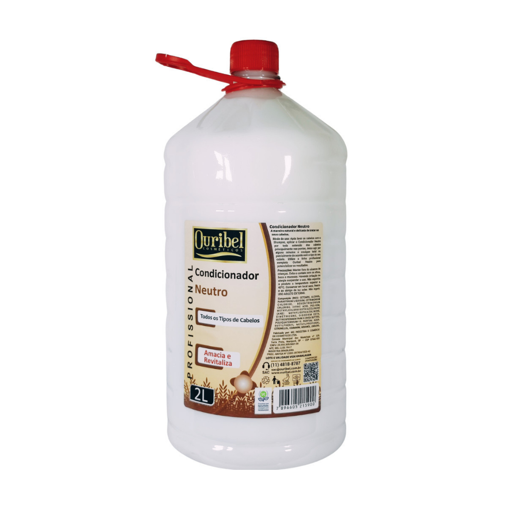 VOCÊ ESTÁ COMPRANDO: 01 Shampoo Sem Sal Profissional Ouribel Neutro de 2 Litros 01 Condicionador Sem Sal Profissional Ouribel Neutro de 2 Litros DESCRIÇÃO DO PRODUTO: Os produtos Profissionais para Salão da Ouribel, foram especialmente desenvolvidos para cuidar dos cabelos sem agredi-los, nutrindo da raiz as pontas. É um produto inovador e com capacidade de depositar nos fios um composto de vitaminas altamente eficaz. um excelente fonte de fibras, proteínas da vitamina E e D-Pantenol que ajudam a manter as fibras capilares e fixar o colágeno nos fios. Possui também uma carga de proteínas que mantem os fios mais saudáveis por mais tempo. MODO DE USAR: SHAMPOO: Aplique uma quantidade generosa na palma da mão, e em seguida distribua de maneira uniforme sobre os cabelos úmidos, com as pontas dos dedos, massageie suavemente os fios e em seguida enxágue com água abundante. Se necessário repita o processo de lavagem. Para um ótimo resultado use a linha. CONDICIONADOR: Após lavar os cabelos, Aplique uma quantidade generosa na palma da mão, e em seguida distribua de maneira uniforme sobre os cabelos úmidos, com as pontas dos dedos, massageie suavemente os fios e em seguida enxágue com água abundante. PRECAUÇÕES: ============ Produto de uso externo, manter o produto fora do alcance de crianças, evite o contato com os olhos, caso isso ocorra lave com água corrente em abundância, suspenda o uso em caso de irritação e procure orientação médica. manter o produto ao abrigo da luz solar e do calor. PRODUTO 100% ORIGINAL COM NOTA FISCAL EM NOME DO COMPRADOR