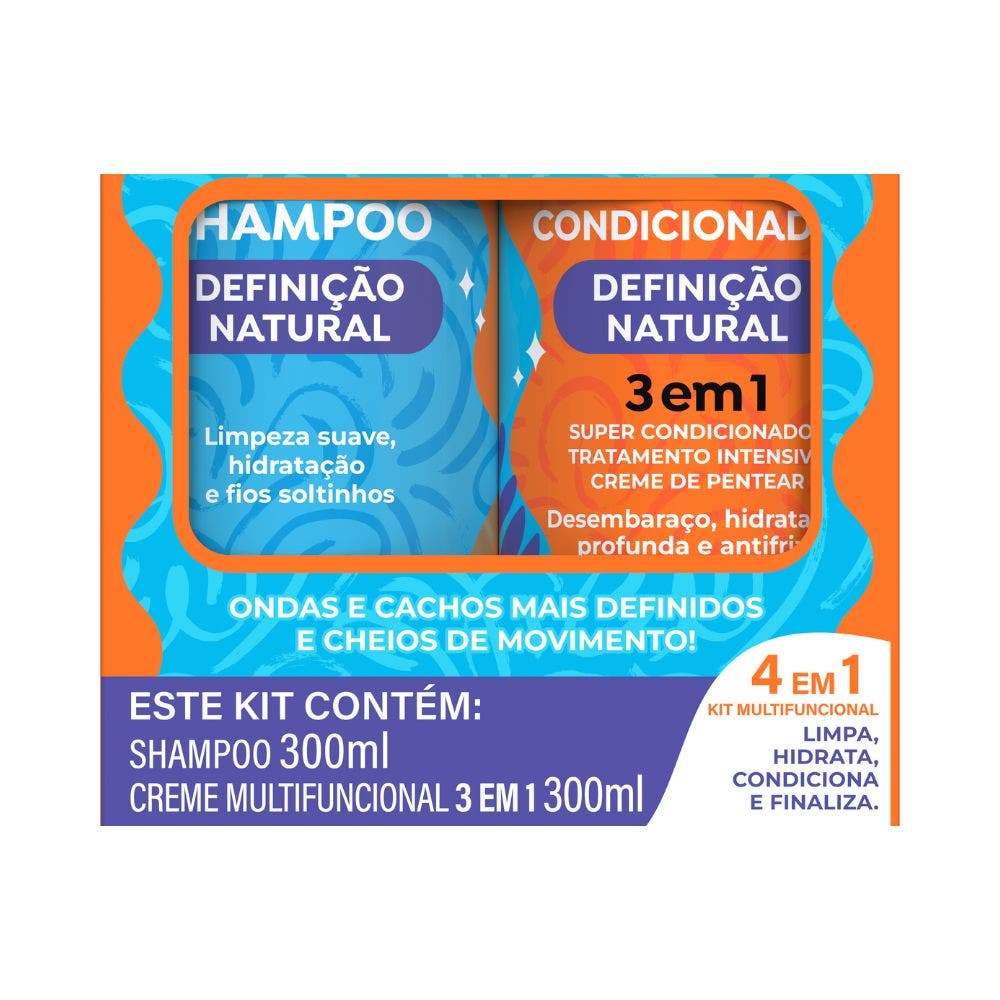 O Kit Shampoo & Creme Multifuncional Salon Line Definição Natural foi desenvolvido para proporcionar um tratamento completo aos cabelos cacheados e ondulados. Shampoo Definição Natural: Limpa suavemente o couro cabeludo e os fios sem ressecar, mantendo a hidratação natural e preparando o cabelo para o tratamento. Creme Multifuncional Definição Natural: Com fórmula versátil, pode ser usado como pré-shampoo, condicionador, leave-in ou tratamento, promovendo hidratação intensa, maciez e definição duradoura. Com ativos nutritivos, o kit garante cabelos saudáveis, com cachos definidos, leves e cheios de brilho, sendo ideal para quem busca praticidade e cuidados diários eficazes. Modo de Uso: Shampoo: Aplique nos cabelos molhados. Massageie suavemente o couro cabeludo e os fios até formar espuma. Enxágue bem. Creme Multifuncional: Pré-shampoo: Aplique nos fios secos antes da lavagem, deixe agir alguns minutos e lave normalmente. Condicionador: Após o shampoo, aplique no comprimento e pontas, deixe agir e enxágue. Leave-in: Aplique nos cabelos úmidos, finalize como desejar e deixe secar naturalmente ou com difusor. Tratamento: Utilize como máscara, deixando agir de 3 a 5 minutos antes de enxaguar.