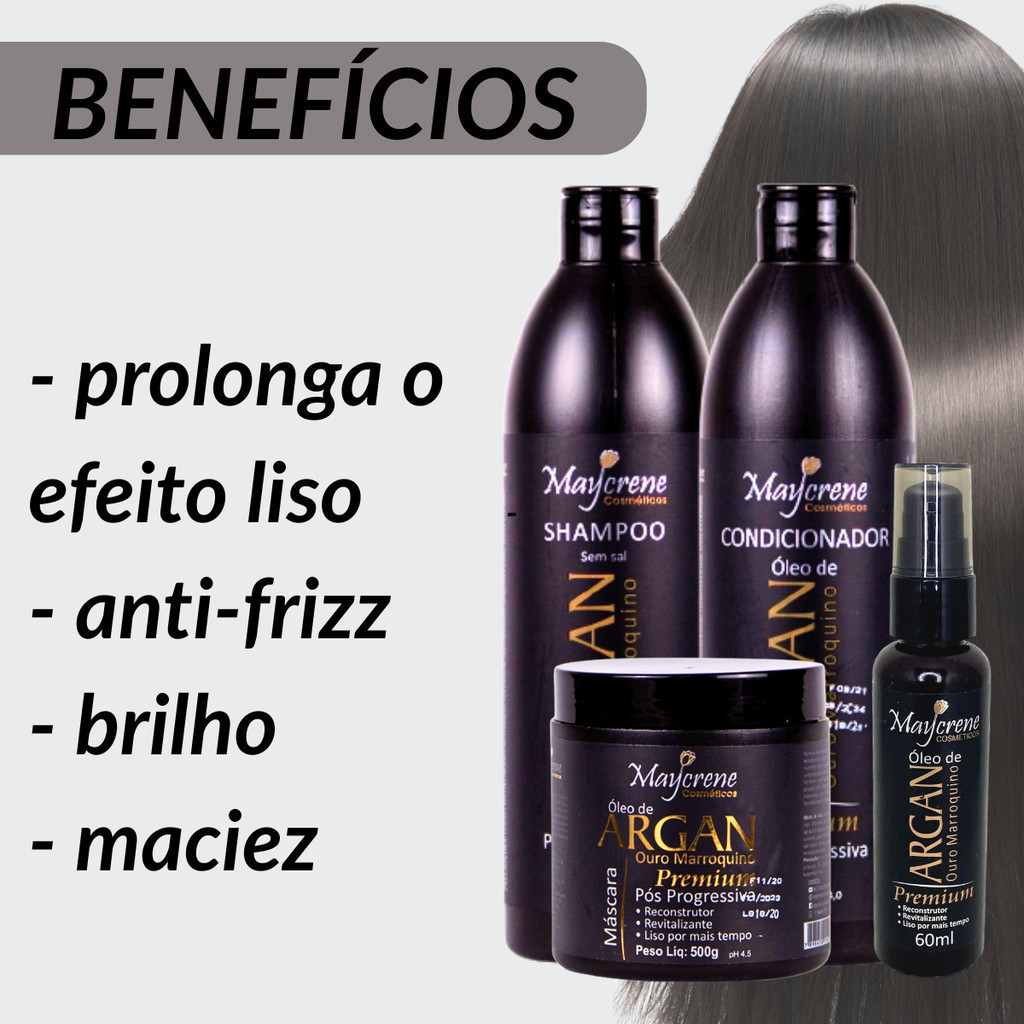 | Kit Shampoo e Condicionador + Máscara Pós Progressiva Argan Premium este produto | R$ 31,99 | 60% | 4.9/5 | 5 |