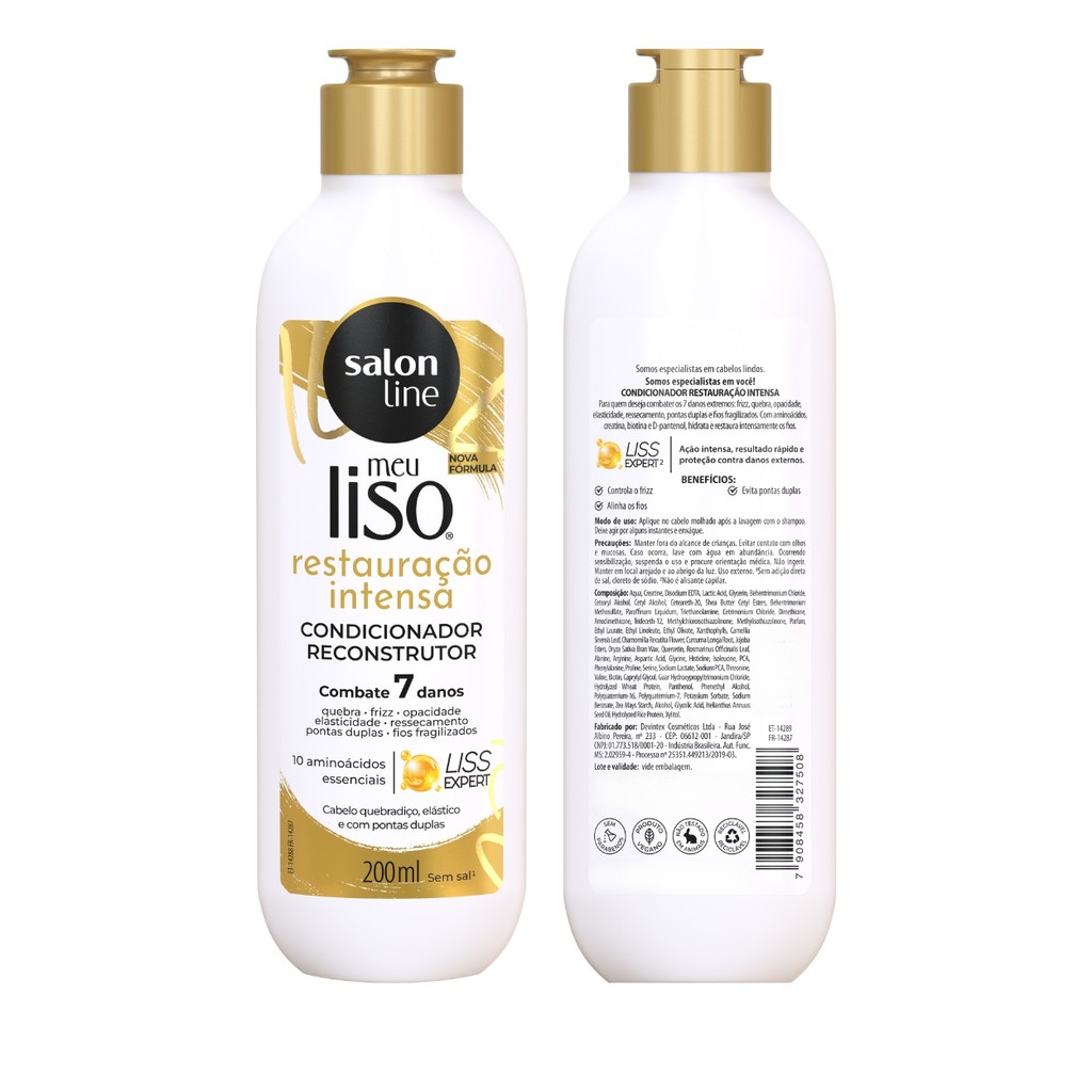 Oii, é um prazer ter você aqui! Seu cabelo está precisando de uma reconstrução profunda? O Kit Shampoo e Condicionador Restauração Intensa Salon Line é a escolha perfeita para revitalizar e recuperar seus fios danificados. Devolva a força e o brilho ao seu cabelo de forma prática e eficiente! O que é: - Kit Shampoo e Condicionador Restauração Intensa. - Marca: Salon Line. O que tem: - 1 Shampoo restauração 300ml. - 1 Condicionador restauração 200ml. - Biotina. - D-pantenol. - 10 Aminoácidos. O que faz: - Combate os 7 danos extremos. Indicado para: - Todo tipo de cabelo. - A partir de 12 anos. Como usar: Shampoo: - Aplique em toda raiz. - Massageie até formar espuma. - Enxágue. Condicionador: - Aplique em todo o comprimento ate pontas. - Massageie e deixe agir de 1 a 3 minutos. - Enxágue. Precauções de uso: - Evite contato com olhos e mucosas. - Não usar se o couro cabeludo estiver irritado ou ferido. - Não ingerir. Com o Kit Shampoo e Condicionador Restauração Intensa Salon Line, você garante cabelos mais fortes, reconstruídos e saudáveis, prontos para arrasar em qualquer ocasião. Não perca essa oportunidade de revitalizar seus fios e garantir um liso impecável! Surgiu alguma dúvida? Entre em contato com a gente! Boas Compras :)