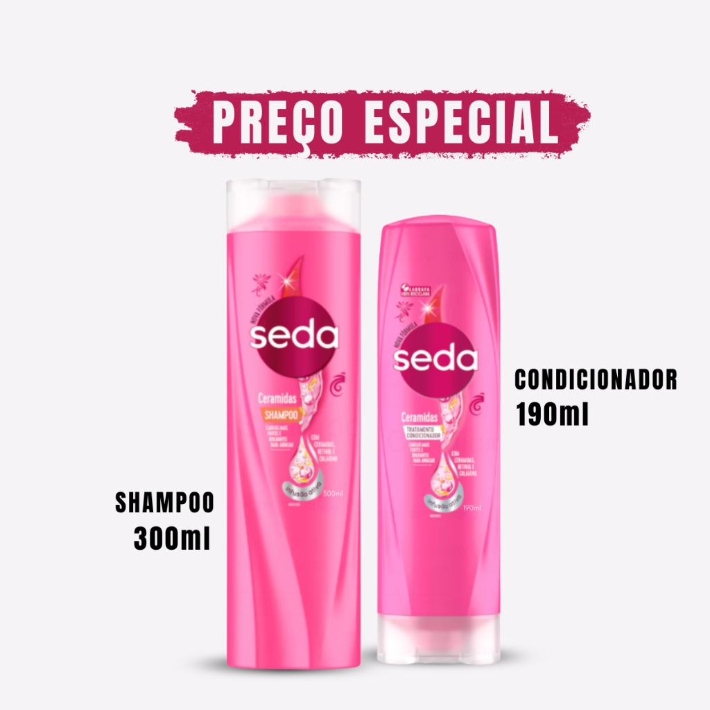 Kit Shampoo e Condicionador Seda – Preço Especial! Cuide dos seus cabelos com qualidade e economia! O Kit Shampoo e Condicionador Seda traz a combinação perfeita de shampoo e condicionador para deixar seus fios saudáveis, macios e super hidratados todos os dias. Com preço especial, é a escolha ideal para quem busca cuidar dos cabelos gastando menos. Temos diversas opções de Kit Shampoo E Condicionador para atender todos os tipos de cabelo, selecione a melhor opção para você. Benefícios do Kit Condicionador e Shampoo Seda - Limpeza suave e hidratação intensa - Fios mais fortes, macios e cheios de vida - Economia com o kit - Variedade de linhas Seda para diferentes necessidades Escolha o seu e conquiste cabelos lindos, hidratados e com brilho com o Kit Seda Shampoo e Condicionador itens inclusos: 1X Shampoo Seda 300ml 1X Condicionador Seda 190ml