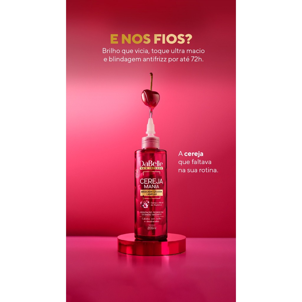 Hidratação potente com desmaio imediato e brilho intenso! O Shampoo limpa suavemente sem ressecar e prepara os fios para a hidratação, deixando-os leves, macios e com brilho intenso. A Máscara Lamelar proporciona desmaio imediato, alinhamento duradouro e brilho espelhado em poucos minutos. O resultado? Fios desmaiados, alinhados e com brilho radiante! ATIVOS CEREJA: Uma fruta poderosa, cheia de nutrientes que repõem a água dos fios, deixando super hidratado e com o brilho que a gente ama. Os cabelos ficam macios, leves e cheios de vida. BLEND DE PEPTÍDEOS: Uma combinação de proteínas que cria uma blindagem ao redor dos fios, protegendo contra danos do calor, poluição e agressões do dia a dia. O cabelo fica mais forte, protegido e pronto pra encarar a rotina. IDEAL PARA ETAPA DE HIDRATAÇÃO DO CRONOGRAMA CAPILAR*