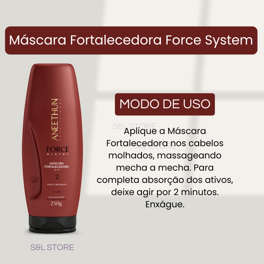 Kit Shampoo + Máscara + Dose Linha Force System Aneethun Fortalecimento dos fios