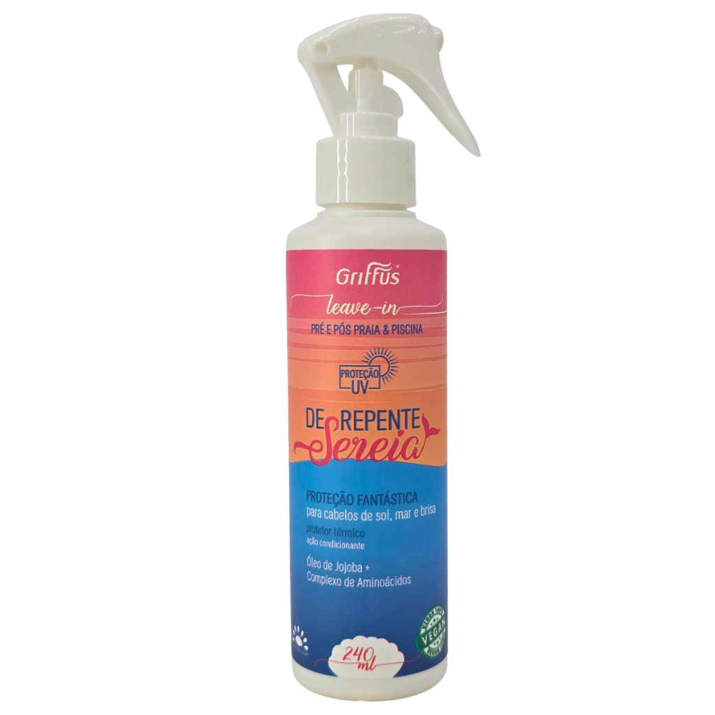 Kit Shampoo + Tratamento + Leave-in + Fluido De Repente Sereia Vegano Griffus ---------------------------------------------------------------------------------------------------- Shampoo Pré e Pós Praia e Piscina para Cabelos de Sol, Mar e Brisa De Repente Sereia Griffus Composição: aqua, sodium laureth sulfato, cocamidopropyl betaine, palm kernelamide dea, parfum, glycerin, sodium sulfate, citric acid, disodium edta, limonene, simmondsia chinensis seed oil, benzophenone-3, butylene glycol, methylchloroisotiazolinone and methylisotiazolinone, arginine, sodium pca, proline, sodium lactate, alanine, aspartic acid, glycice, histidine, pca, threonine, isoleucine, phenylalanine, serine and valine. Livre de Sal*; Frasco Ecológico Biodegradável; Ativos Naturais; Livre de Glúten; Ativos Tecnológicos; Livre de Óleo Mineral e Parabenos. Modo de Usar: Aplique o Shampoo De Repente Sereia Griffus nos fios molhados, da raiz às pontas. Massageie suavemente até formar espuma. Enxágue bem e repita a operação, se for necessário. Para resultados ainda melhores, recomendamos o uso de toda a linha De Repente Sereia Griffus. Uso diário. Número de Processo na ANVISA: 25351.015770/2021-31. ---------------------------------------------------------------------------------------------------- Tratamento Intensivo Salva Fios para Cabelos de Sol, Mar e Brisa De Repente Sereia Griffus 300ml Composição: Aqua, cetearyl alcohol, stearamidopropyl dimethtlamine, cocos nucifera, oil, amino bispropyl dimethicone, cyclopensailoxane, lactic acid, behentrimonium methosulfate, butylene glycol, parfum, dimethicone, poliquarternium-67, hydrolized keratin, sodium lactate, arginie, sodium pca, proline, aspartic acid, limonene, alanine, histidine, pca, threonne, glycine, isoleucine, serine, phenylalanine, valine, simmondsia, chinensis seed oil, creatine, benzhophenone-3, sodium acetate, methylchloroisotiazolinone and methylisotiazolinone, tetrasodium edta and isopropyl alcohol. Modo de Usar: Após lavar os cabelos com Shampoo, aplique o Salva Fios De Repente Sereia do comprimento até as pontas, enluvando as mechas. Deixe agir por 1 minuto. Enxágue. Não é necessário o uso de condicionador. Uso diário. ---------------------------------------------------------------------------------------------------- Leave-in Pré e Pós Praia e Piscina De Repente Sereia Griffus 240ml Composição: Aqua, cetearyl alcohol, coco nucifera oil, glycerin, staramidopropyl dimethilamine, behentrimonium methosulfate, lactic acid, parfum, polyquarternium-55, peg-4, peg-6, castor oil hydrogenated ethoxylated, peg-7, limonene, peg-8, simmondsia, chinensis seed oil, butyrospermum parkii shea butter, linalool, benzophenone-3, butylene glycol, methylchloroisothiazolinone and methylisothiazolinone, argenine sodium lactate, sodium pca, proline, aspartic acid, copernicia cerifera cera, alanine, glycine , histidine, isoleucine, pca, phenylalanine, serine, theorine and valine. Modo de Usar: Com os cabelos úmidos ou secos, aplique o Leave-in De Repente Sereia por toda a extensão dos fios. Penteie e finalize como de costume. Recomendado também para o uso com secador, modelador e prancha. Uso diário. ---------------------------------------------------------------------------------------------------- Fluido Bifasico Iluminador Fantástico para Cabelos de Sol, Mar e Brisa De Repente Sereia Griffus 60ml Composição: Aqua, Cyclopentasiloxane, isopropyl myristate, phenyl, trimethicone, dimethicone, parfum, butylene glycol, linalool, butylphenyl, methylpropional, hexyl cinnamal, arginine, sodium lactate, sodium pca, amyl cinnamal, proline, arpartic acid, coumarin, alanine, simmondisia, chinesis, seed oil, benzophenone-3, glycine, histidini, isoleucine, pca, phenylanine, serine, threonine, valine, polyquarternium-55, methylchloroisothiazolinone and methylisothiazolinone, limonene and CL 42090. Modo de Usar: Agite o frasco do Brilho do Mar de Repente Sereia para misturar as fases do produto. Aplique nos cabelos, secos ou úmidos, do comprimento até as pontas. Finalize como de costume. Uso diário. ---------------------------------------------------------------------------------------------------- Precauções: Uso externo. Não aplique em mucosas. Havendo contato com os olhos, lave-os com água em abundância. Em caso de irritação, suspenda o uso e procure orientação médica. Manter em local fresco, arejado e fora do alcance de crianças e animais domésticos. Proteção UV Não Testado em Animais