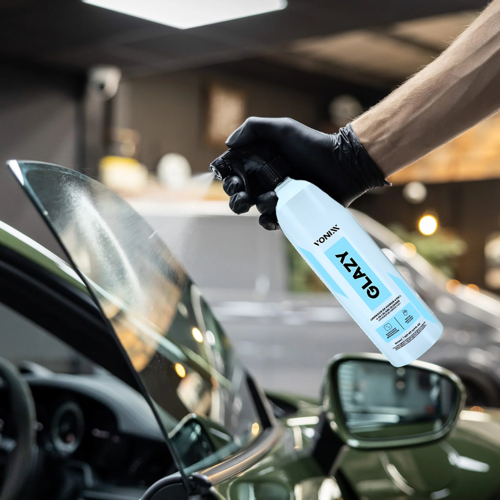 KIT CONTÉM: GLAZY 500ML BLEND SPRAY INTENSE 500ML V-FLOC 500ML APLICADOR DE ESPUMA VONIXX PINCEL ROMA PANO 40X40CM ------------------------------------------------------- LIMPADOR DE VIDROS 4 EM 1 GLAZY 500ML VONIXX DESCRIÇÃO: GLAZY é um produto 4 em 1, de alta tecnologia, desenvolvido para vidros em geral, que limpa, protege, condiciona e atua como redutor de riscos. O produto contém polímeros especiais que reduzem o atrito no vidro, diminuindo as chances de riscos causados por limpadores de para-brisas e movimentações dos vidros laterais. Deixa um toque liso e aspecto de vidro novo toque liso. MODO DE USO: 1 - Pulverize uma pequena quantidade do produto diretamente nos vidros; 2 - Espalhe rapidamente o produto utilizando uma microfibra específica para vidros. 3 - Vire a microfibra ou utilize uma segunda microfibra limpa e seca para dar acabamento até concluir o processo. 4 - Se necessário, repita a operação. ------------------------------------------------------- INTENSE 500ML - RENOVADOR DE PLÁSTICOS INTERNOS DESCRIÇÃO: Intense é um renovador de plásticos com proteção UV, cuja fórmula balanceada promove acabamento natural e toque seco, com durabilidade de 6 meses. MODO DE USO: 1. Certifique-se que a superfície esteja limpa e seca 2. Aplique uma pequena quantidade de produto de maneira uniforme com o auxílio de um aplicador de microfibra 3. Espalhe bem até o total preenchimento da peça ------------------------------------------------------- V-FLOC 500ML - LAVA AUTOS SUPER CONCENTRADO DESCRIÇÃO: V-Floc é um lava autos de alta performance e de pH neutro. Sua fórmula contém agentes condicionadores e tensoativos especiais que proporcionam uma lavagem suave e eficiente. MODO DE USO: 1. Realizar a pré-lavagem do veículo para retirada do excesso de sujeira 2. Diluir aproximadamente 10ml de V-FLOC em 4 litros de água; Recomendamos ajustar a quantidade de produto de acordo com o nível de sujeira 3. Iniciar a lavagem com o auxílio de Luva de Microfibra, sempre começando pela parte superior do veículo 4. Mergulhar a luva na solução e esfregar suavemente, até completar todo o veículo 5. Enxaguar em seguida até a retirada de todo o produto 6. Recomendamos o uso da Toalha de Secagem para finalizar ------------------------------------------------------- BLEND CERAMIC SPRAY WAX 500ML - CERA LÍQUIDA COM SIO2 E CARNAÚBA DESCRIÇÃO: Blend Ceramic & Carnaúba Spray Wax é uma cera híbrida, composta por SiO2 e pela mais pura carnaúba tipo 1 e que protege a superfície veicular por até quatro meses. O produto promove a resistência cerâmica, brilho quente da carnaúba e hidrorrepelência. DURABILIDADE: Até quatro meses de durabilidade MODO DE USAR: 1. Agite bem o produto antes de usar 2. Após lavar o veículo, pulverize uma pequena quantidade do produto na pintura. Mantenha uma distancia de 20 cm em uma área não superior à 60 cm x 60 cm 3. Sem deixar secar, realize o acabamento utilizando toalha de microfibra limpa e seca, até obter o brilho desejado 4. Continue fazendo o processo até a conclusão total do veículo Obs: Em caso de manchas, aplicar novamente o produto.