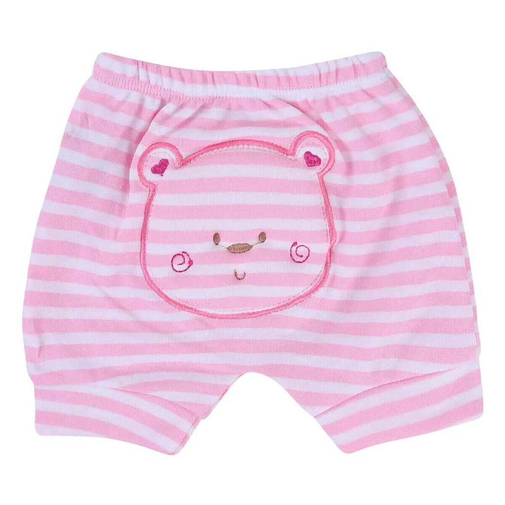 Kit Short Smoby Baby 03 Peças Malha Listrada Bordado Bumbum Menina