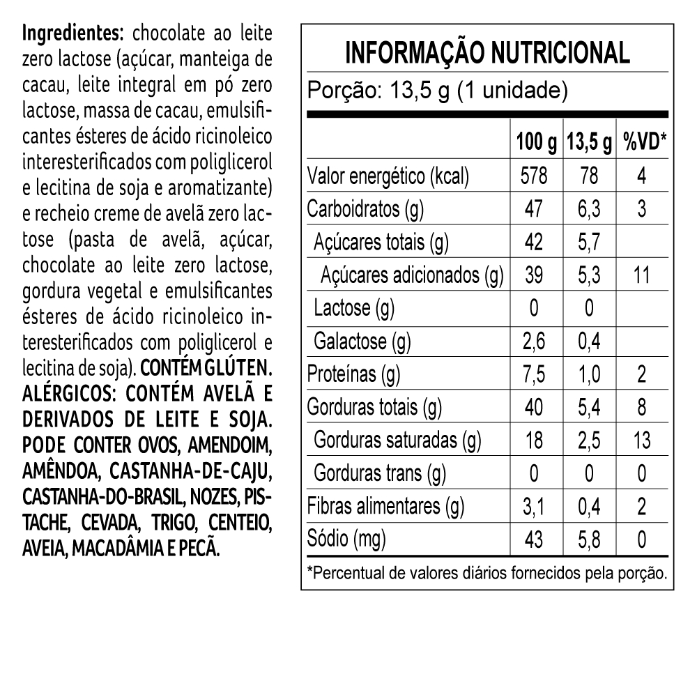 Somos Loja Oficial Cacau Show, a maior rede de chocolates finos do Brasil! Produto Novo | Original | Lacrado | Pronta Entrega ====================================================================================================== Descrição dos Produtos: *** Kit com 5 unidades do Bombom avelã zero lactose 13,5g Cacau Show Delicioso bombom de chocolate ao leite com recheio sabor avelã zero lactose. Se você tem restrição na dieta, mas gosta de chocolate, veio ao lugar certo! Experimente o Bombom Bless Zero Lactose Avelã 13,5g da Cacau Show O Bombom Bless Zero Lactose Avelã é perfeito para quem deseja saborear o delicioso chocolate ao leite com um recheio cremoso de avelã, mas precisa de uma opção sem lactose. Um mimo irresistível e inclusivo! Sabor inigualável A combinação perfeita do chocolate ao leite suave com o recheio cremoso e marcante de avelã oferece uma experiência deliciosa e equilibrada, sem lactose. Detalhes • Zero lactose. • Recheio cremoso sabor avelã. • Textura macia e sabor intenso. Por que escolher o Bombom Bless Zero Lactose Avelã 13,5g? Escolher o Bombom Bless Zero Lactose Avelã é optar por uma experiência saborosa e inclusiva. Compacto e fácil de levar, é ideal para qualquer momento, proporcionando um doce prazer sem abrir mão de restrições alimentares. ====================================================================================================== *Enviamos em até 24 horas após a confirmação do pagamento. *Confira meus outros anúncios e aproveite o frete. *Qualquer dúvida estarei à disposição via chat, teremos o maior prazer em responder! *Sua compra 100% protegida! Agradecemos a visita em nossa loja e Boas Compras! Atenciosamente, Cacau Show Ctba
