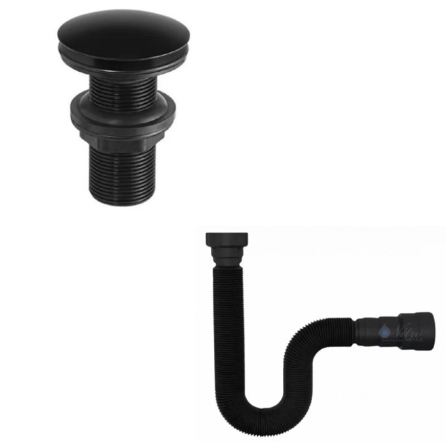 Kit Sifão Universal Preto + Válvula Click-Up Lavatório Cuba