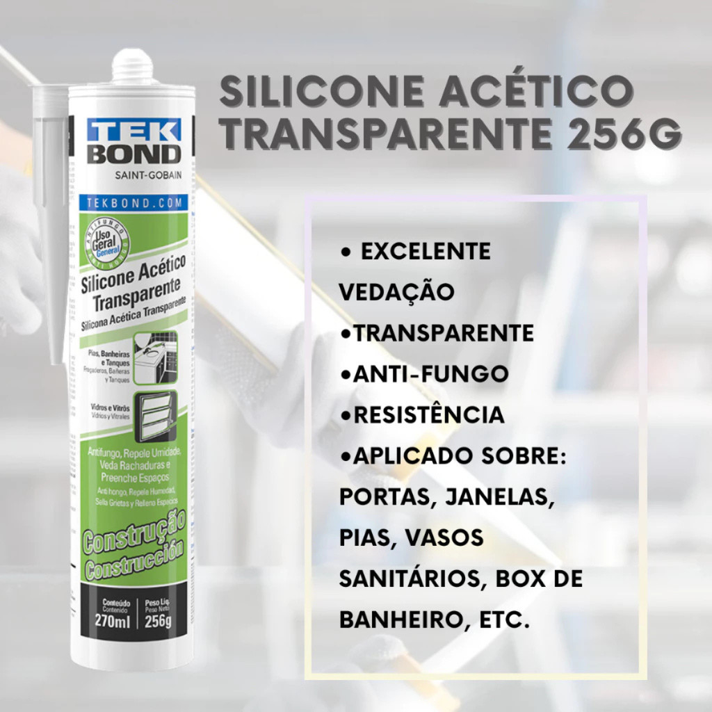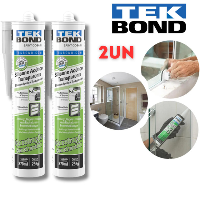 Kits com 1UN/2UN/3UN/4UN/5UN Silicone Acético Incolor Tekbond – Vedação Perfeita, Acabamento Invisível! O Silicone Acético Incolor Tekbond é a solução ideal para quem busca vedação profissional com acabamento limpo e discreto. Perfeito para aplicações em vidro, alumínio, cerâmica, azulejos, espelhos e superfícies vitrificadas, ele forma uma vedação durável, elástica e totalmente resistente à umidade e variações de temperatura. -Totalmente impermeável -Transparente/Incolor – Não altera o visual do ambiente -Alta aderência em superfícies lisas -Ideal para box, pias, janelas, espelhos e bancadas -Possui ação antifungo – perfeito para áreas úmidas como banheiros e cozinhas ✅Indicado para: - Vedação de box de banheiro - Colagem de vidros e espelhos - Acabamento em pias, bancadas e janelas - Selagens em ambientes internos e externos Disponível no Tubo de **256g/270ml** *Não recomendado para superfícies porosas como madeira ou concreto cru* --- Garanta agora a vedação perfeita com a qualidade Tekbond, e dê o acabamento profissional que seu projeto merece! Compre agora e receba em casa com rapidez e segurança! Envios em até 24H Úteis, Nota Fiscal, Garantia e Procedência! Se tiver alguma dúvida utilize o Chat, vai ser um prazer lhe atender! Obrigado pela visita e pela preferencia!