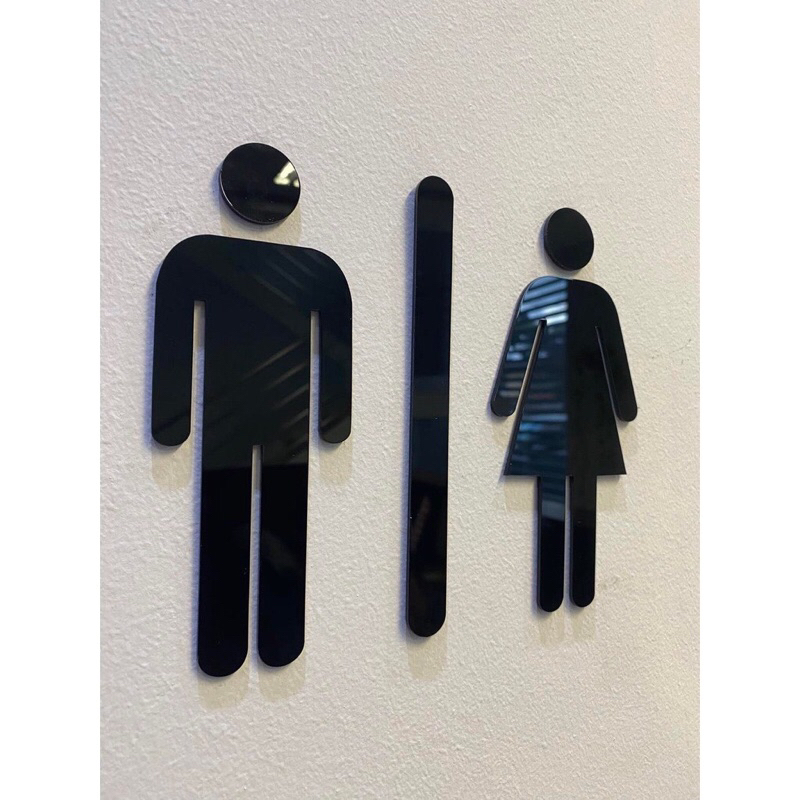 Kit sinalização em acrílico espelhado decoração banheiro masculino feminino