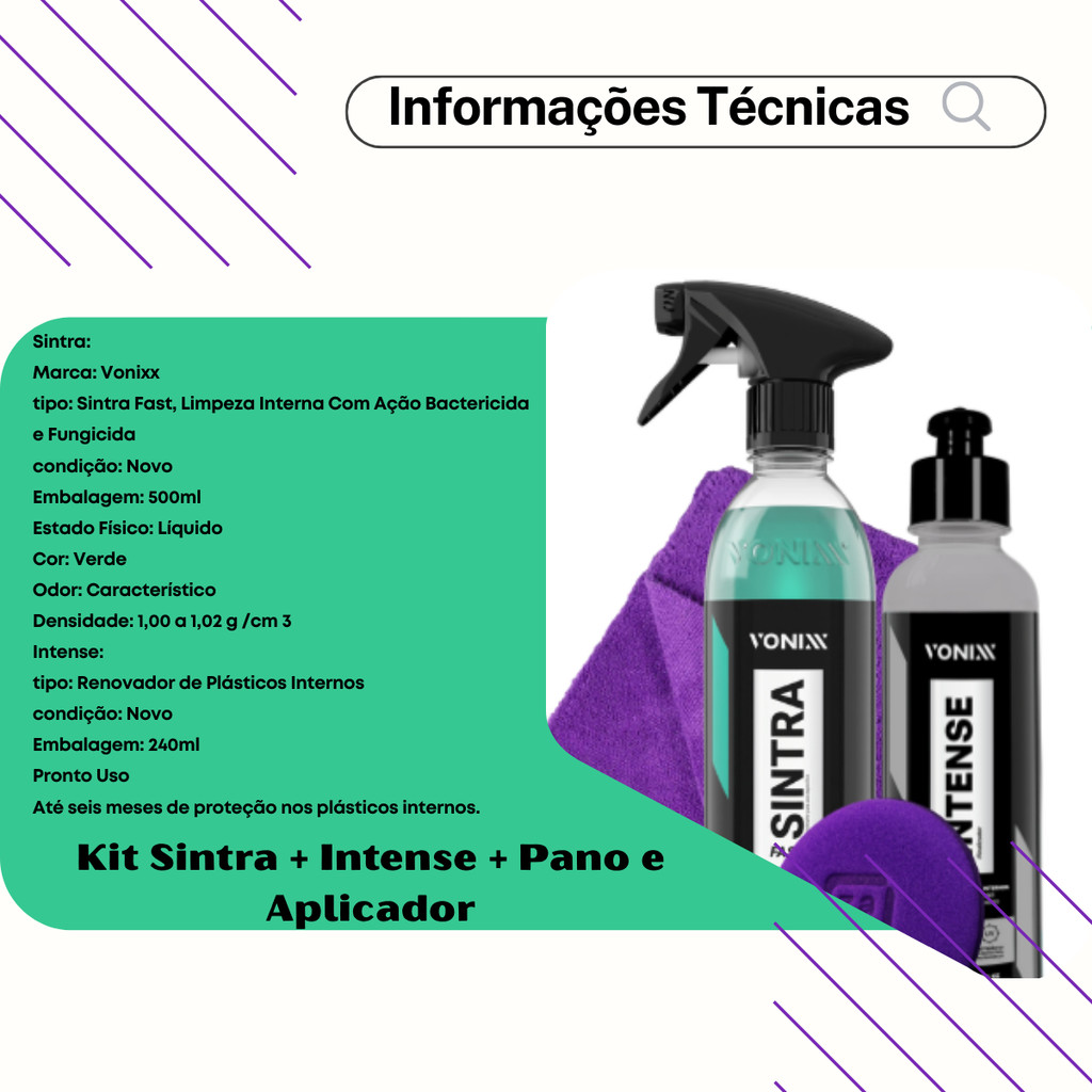 Kit Sintra Fast Limpador + Intense Renovador De Plásticos Vonixx Com Pano e Aplicador