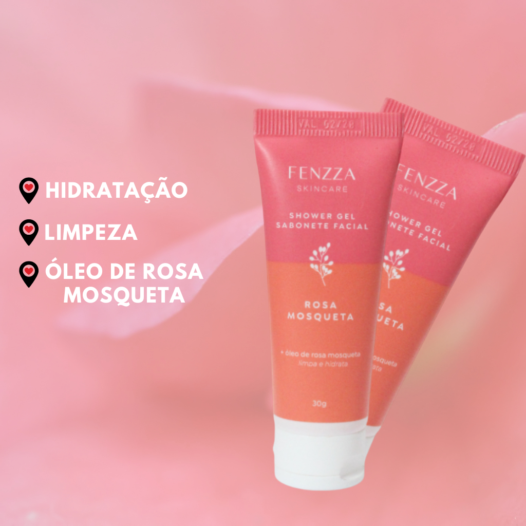 Descrição do produto: Transforme sua rotina de cuidados com o rosto com o Kit Fenzza Rosa Mosqueta! Este combo essencial é composto por: ✅ Sabonete Facial Shower Gel (30g) – promove uma limpeza suave e eficaz, enquanto hidrata e revitaliza a pele com o poder do óleo de rosa mosqueta. Ideal para remover impurezas sem ressecar. ✅ Hidratante Facial (30g) – proporciona nutrição intensa e hidratação profunda, auxiliando na regeneração da pele e deixando-a macia e luminosa. Fórmula leve e de rápida absorção. ✨ Benefícios: Enriquecidos com óleo de rosa mosqueta, conhecido por suas propriedades nutritivas e hidratantes. Vegano e livre de parabenos. Ideal para todos os tipos de pele. Garanta já o seu e sinta a diferença de uma pele limpa, hidratada e saudável todos os dias!