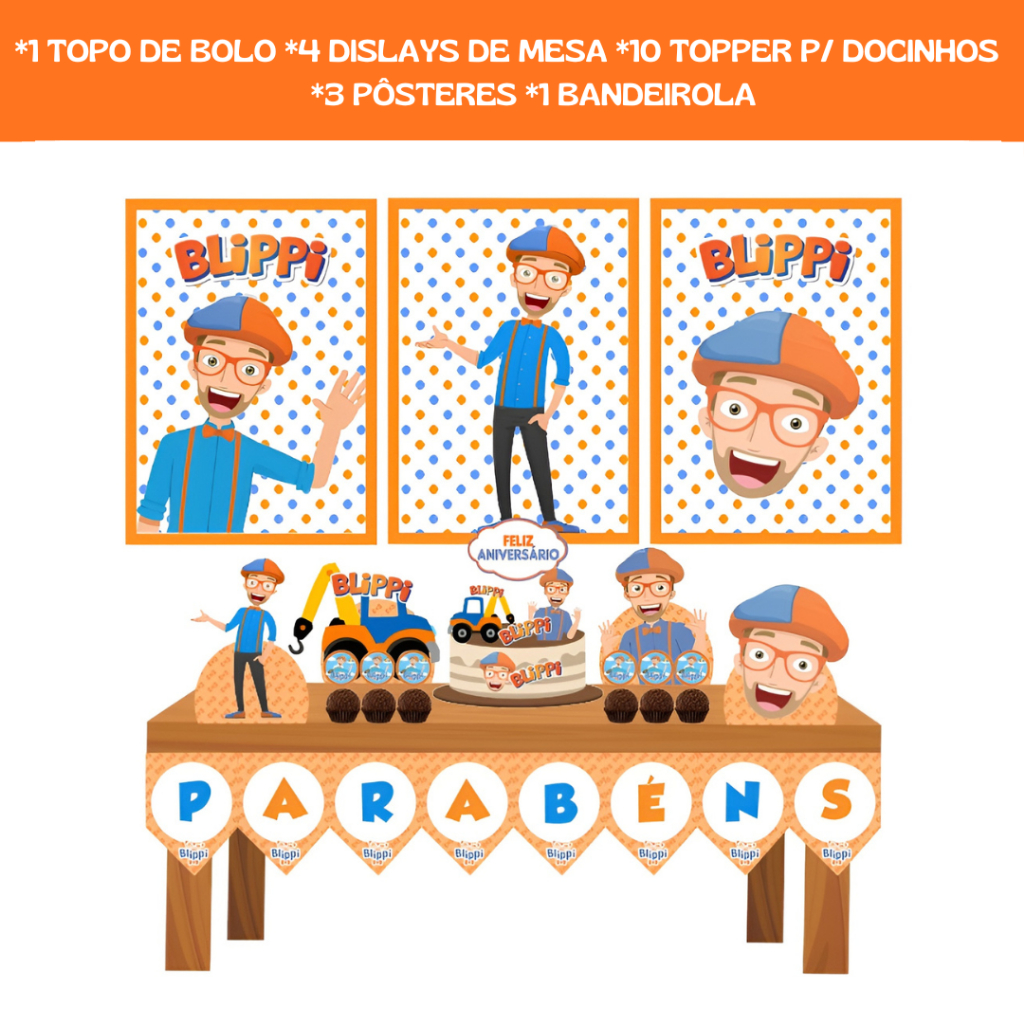Kit Só um Bolinho - Blippi - Festa em Casa - Mesversário