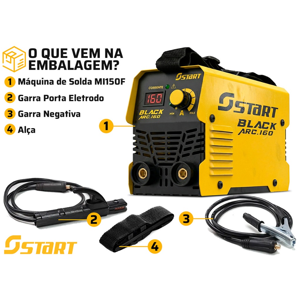 Distribuído por Ismafer Ferramentas MÁQUINA DE SOLDA INVERSORA PARA SERRALHEIRO 220V TIG ELETRODO MMA BLACK ARC 160A - Start A Máquina de Solda Inversora Start Black Arc 160A é uma ferramenta portátil e eficiente, projetada para soldagem de alta qualidade com eletrodos de até 2,5mm; mm. Equipada com display digital, regulador de potência e turbo ventilação, ela oferece facilidade de manuseio, economia de energia e soldas com melhor acabamento. Ideal para processos MMA e TIG raspagem, é perfeita para profissionais e entusiastas que buscam precisão e desempenho. CONTEÚDO DA EMBALAGEM: - 01 Máquina Inversora de Solda Black Arc 160A 220V; - 01 Garra negativa 9 mm; - 01 Porta eletrodo 9 mm. VANTAGENS: - Alta capacidade de soldagem e cordão de solda com melhor acabamento; - Portátil com display digital para melhor visualização e controle; - Turbo ventilação e proteção com fusível térmico automático; - Economia de energia e soldas com menos faísca e fumaça; - Regulador de potência para ajustes precisos; - Suporta o processo TIG raspagem; - Fácil manuseio e transporte. FICHA TÉCNICA: - Materiais soldáveis: Aço carbono, Ferro, Aço inoxidável; - Fator de Trabalho: 80% a 160A; 100% a 120A; - Corrente de entrada: 15-25 A máx; - Corrente de saída: 20A - 160A; - Tensão de entrada: 50/60 Hz; - Eletrodo: 6013 Até 2,5 mm; - Proteção de sobrecarga; - Com Tecnologia inverter; - Grau de proteção: IP21; - Grau de isolamento: F; - Tensão em vazio: 72V; - Tensão em vazio: 60V; - Potência: 3300W; - Voltagem: 220 V; - Conector: 9mm; - Anti-Stick. INDICADO PARA: - Aplicações profissionais e domésticas que exigem precisão e qualidade; - Soldagem com eletrodos de até 2,5mm; - Processos MMA e TIG raspagem. MARCA: Start MODELO: Black Arc 160 + MASCARA DE SOLDA FOTOSSENSIVEL BTM1000 Leve, com design equilibrado, A máscara de solda The Black Tools, protege o usuário de partículas volantes frontais, radiação ultravioleta, infravermelho e luminosidade intensa. Com apoio para cabeça completamente ajustável, proporciona maior conforto e menor fadiga. VANTAGENS: - Protege o usuário de partículas volantes frontais, radiação ultravioleta, infravermelho e luminosidade interna. - Bateria interna recarregável através de célula solar. - Escurecimento automático. FICHA TÉCNICA: - Temperatura de armazenamento : -20 ~ 70oC. - Dimensões do filtro : 110 x 90 x 10 mm. - Certificado de Aprovação (CA): 49.540. - Temperatura de operação : -5 ~ 55oC. - Proteção do filtro UV/IR : DIN 15. - Tempo de resposta : 1/25000. - Área de visão : 93 x 42 mm. - Cód. do Produto : 12196.4. - Estágio escuro : DIN 11. - Bateria : Íons de Lítio. - Estágio claro : DIN 4. Marca: The Black Tools Peso: 480 g + Eletrodo MGM Fusion-AM - 500 Gramas - 102096-250MSISM Apresentamos o Eletrodo MGM Fusion-AM - Saq 500 Gramas - 102096-250MSISM, uma opção de alta qualidade para suas necessidades de soldagem. Este produto é conhecido por sua durabilidade e eficiência, tornando-o uma escolha popular entre os profissionais. Características: -Marca: MAGMA -Modelo: Fusion-AM . -Peso: 500 gramas. -Referência: 102096-250MSISM. -Quantidade: Aproximadamente 27 varetas por saco. Este eletrodo é ideal para uma variedade de aplicações de soldagem, oferecendo uma fusão consistente e confiável. Seja você um profissional experiente ou um entusiasta do faça-você-mesmo, o Eletrodo MGM Fusion-AM - Saq 500 Gramas - 102096-250MSISM é uma excelente adição à sua caixa de ferramentas. Nota: As imagens são apenas para fins ilustrativos. As cores e dimensões reais do produto podem variar ligeiramente das imagens mostradas. Compre agora e experimente a qualidade e a confiabilidade que só a MGM pode oferecer! ATENÇÃO:O produto pode ser enviado na medida 2,5mm ou 3,25mm de acordo com a disponibilidade em estoque. + Esquadro Magnético Para Solda 12 Kg Start Soldas O Esquadro de Solda 12kg é uma ferramenta essencial para soldadores e profissionais de metalurgia, proporcionando precisão e estabilidade durante o processo de soldagem. Fabricado com materiais de alta qualidade, este esquadro oferece durabilidade e resistência, suportando pesos de até 12 kg. Características: - Material Resistente: Construído com aço de alta qualidade, garantindo longa vida útil e resistência ao desgaste. - Peso Suportado: Capacidade de suportar até 12 kg, ideal para trabalhos pesados e complexos. - Precisão: Proporciona ângulos exatos para uma soldagem precisa - Versatilidade: Adequado para diversos tipos de soldagem, incluindo MIG, TIG e eletrodo revestido. - Design Ergonômico: Facilita o manuseio e posicionamento, melhorando a eficiência e a segurança no ambiente de trabalho. SKU: KIT24693_23408_22879_22463_24032x2 Distribuído por Ismafer Ferramentas