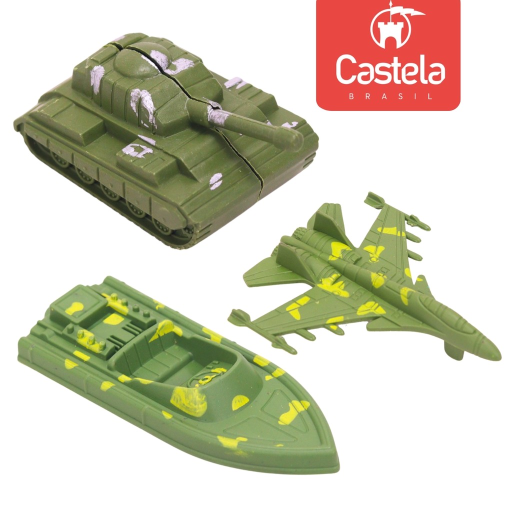 DESCRIÇÃO DO PRODUTO Monte seu próprio campo de batalha com esse incrível kit com 60 peças de miniaturas militares da Castela Brasil! Perfeito para estimular a criatividade, o raciocínio estratégico e o espírito de aventura das crianças – ou até mesmo para colecionadores nostálgicos! O que vem no kit: - Soldadinhos em diferentes poses - Tanque, Barco e aviões - Tudo para criar missões, batalhas e histórias incríveis! CARACTERÍSTICAS TÉCNICAS: Conteúdo da Embalagem: 1 Kit Soldados Militares 60 Peças - Castela Dimensões Aproximadas da Embalagem: 7 cm x 21 cm x 29 cm (Altura x Largura x Comprimento/Profundidade). Material/Composição: Plástico Idade Mínima Recomendada: A partir de 3 anos Participantes: A partir de 1 ou mais pessoas Alimentação: Não se aplica Marca: Castela Brasil Referência: CBS0751 Outras informações: As cores podem variar entre as imagens mostradas acima e o produto. Imagens meramente ilustrativas. Aviso: As informações e imagens divulgadas são de total responsabilidade do fabricante/fornecedor. Produto lacrado e disponível a pronta entrega para todo Brasil! APROVADO PELO INMETRO