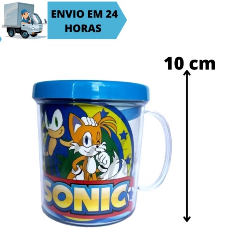 Kit Sonic, Boneco + Caneca Personalizada 350ml