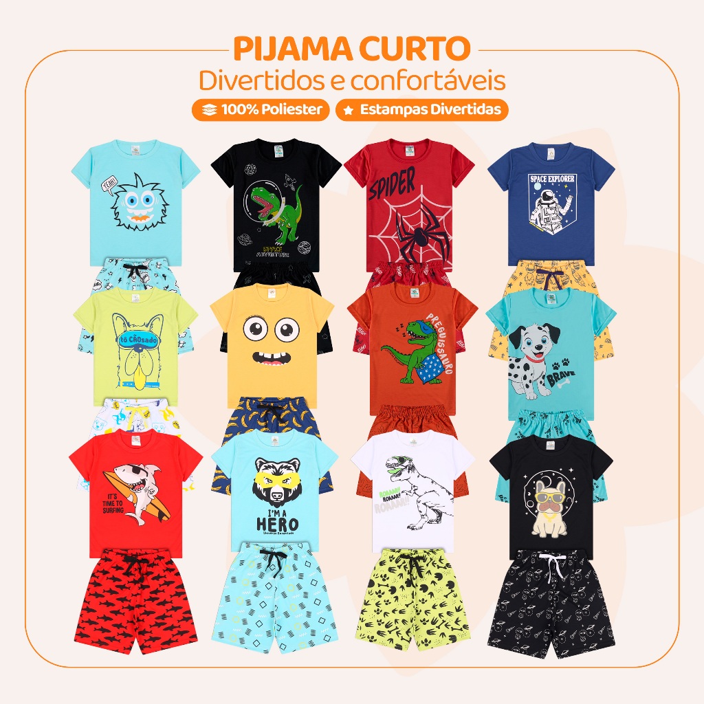 Kit de Pijamas Infantis para Meninos – Escolha entre 1, 3 ou 4 Conjuntos Conforto e diversão para as noites de sono! Estes pijamas infantis foram desenvolvidos para garantir leveza e bem-estar aos pequenos, proporcionando noites aconchegantes e cheias de estilo. Disponível nas seguintes opções: ✔ Kit com 1 conjunto de pijama (1 camiseta + 1 bermuda) ✔ Kit com 3 conjuntos de pijamas (3 camisetas + 3 bermudas) ✔ Kit com 4 conjuntos de pijamas (4 camisetas + 4 bermudas) Detalhes do Produto: ✔ 100% Poliéster – Tecido leve, macio e de secagem rápida, ideal para proporcionar máximo conforto durante o sono. ✔ Modelagem Confortável – A camiseta de manga curta proporciona frescor, enquanto a bermuda tem elástico na cintura, garantindo ajuste perfeito. ✔ Estampas Divertidas – Modelos com desenhos animados e cores vibrantes, deixando o pijama ainda mais estiloso para a criançada. ✔ Sortido e Prático – Os pijamas são enviados em cores e estampas variadas, conforme disponibilidade de estoque. Guia de Tamanhos (Medidas em cm): Camiseta: Tamanho 1 – Busto: 26 | Comprimento: 37 | Veste: 6 a 12 meses Tamanho 2 – Busto: 28 | Comprimento: 38 | Veste: 1 ano Tamanho 3 – Busto: 30 | Comprimento: 41 | Veste: 2 anos Tamanho 4 – Busto: 33 | Comprimento: 45 | Veste: 3 anos Tamanho 6 – Busto: 36 | Comprimento: 45 | Veste: 4/5 anos Tamanho 8 – Busto: 37 | Comprimento: 49 | Veste: 6/7 anos Tamanho 10 – Busto: 38 | Comprimento: 52 | Veste: 8/9 anos Bermuda: Tamanho 1 – Cintura: 19 | Comprimento: 26 | Veste: 6 a 12 meses Tamanho 2 – Cintura: 20 | Comprimento: 27 | Veste: 1 ano Tamanho 3 – Cintura: 21 | Comprimento: 28 | Veste: 2 anos Tamanho 4 – Cintura: 23 | Comprimento: 32 | Veste: 3 anos Tamanho 6 – Cintura: 24 | Comprimento: 33 | Veste: 4/5 anos Tamanho 8 – Cintura: 25 | Comprimento: 36 | Veste: 6/7 anos Tamanho 10 – Cintura: 26 | Comprimento: 37 | Veste: 8/9 anos 📌 Observação: As medidas podem variar em até 2 cm devido ao processo de confecção. Informações Adicionais: ⚠️ Envio sortido: As cores e estampas serão enviadas conforme disponibilidade de estoque, sem possibilidade de escolha. ⚠️ Compras acima de 1 kit podem conter cores repetidas. Envio Rápido: Pedidos confirmados até as 13h são enviados em 24 horas! Garanta já este kit de pijamas infantis para meninos e proporcione noites de sono confortáveis e divertidas para seu pequeno!