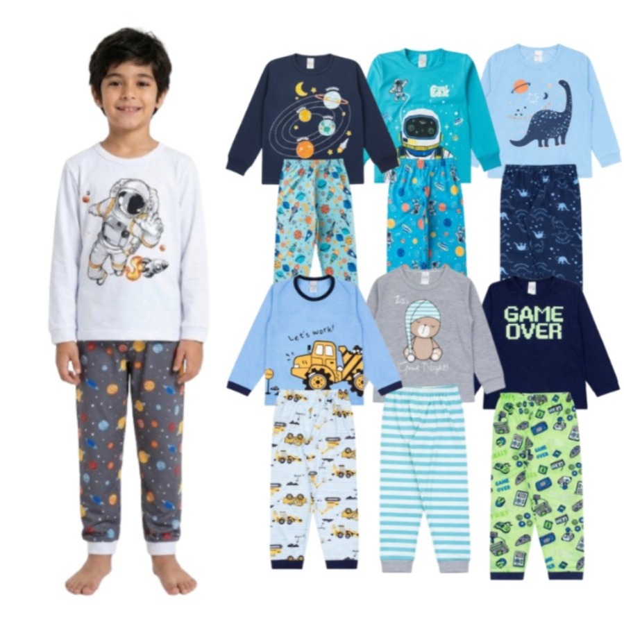 Kit Sortido 2 Pijamas Menino Inverno Tam 1 ao 14 Confortáveis