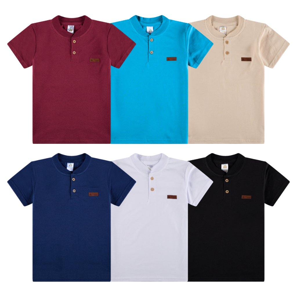 Kit Sortido 3 Camisetas Gola Padre Henley Menino - Elegância e Conforto
