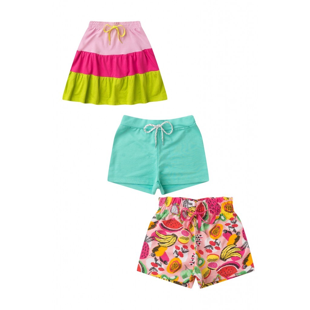 Kit Sortido 3 Shorts - Saia Infantil Feminino Avulso