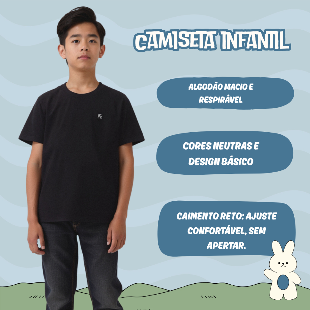 Kit Sortido 4 Peças Camiseta Básica Lisa Menino Cores Neutras Coleção Infantil Juvenil do 3 ao 16