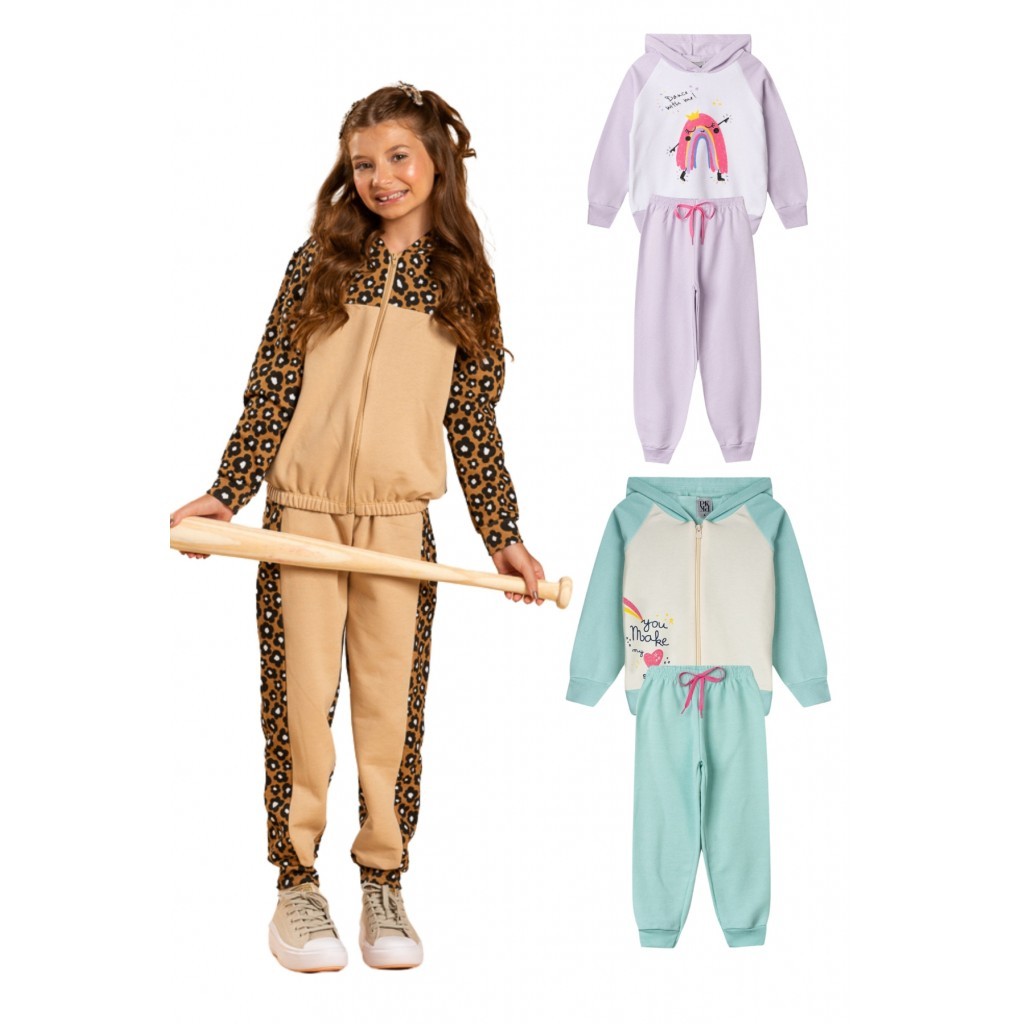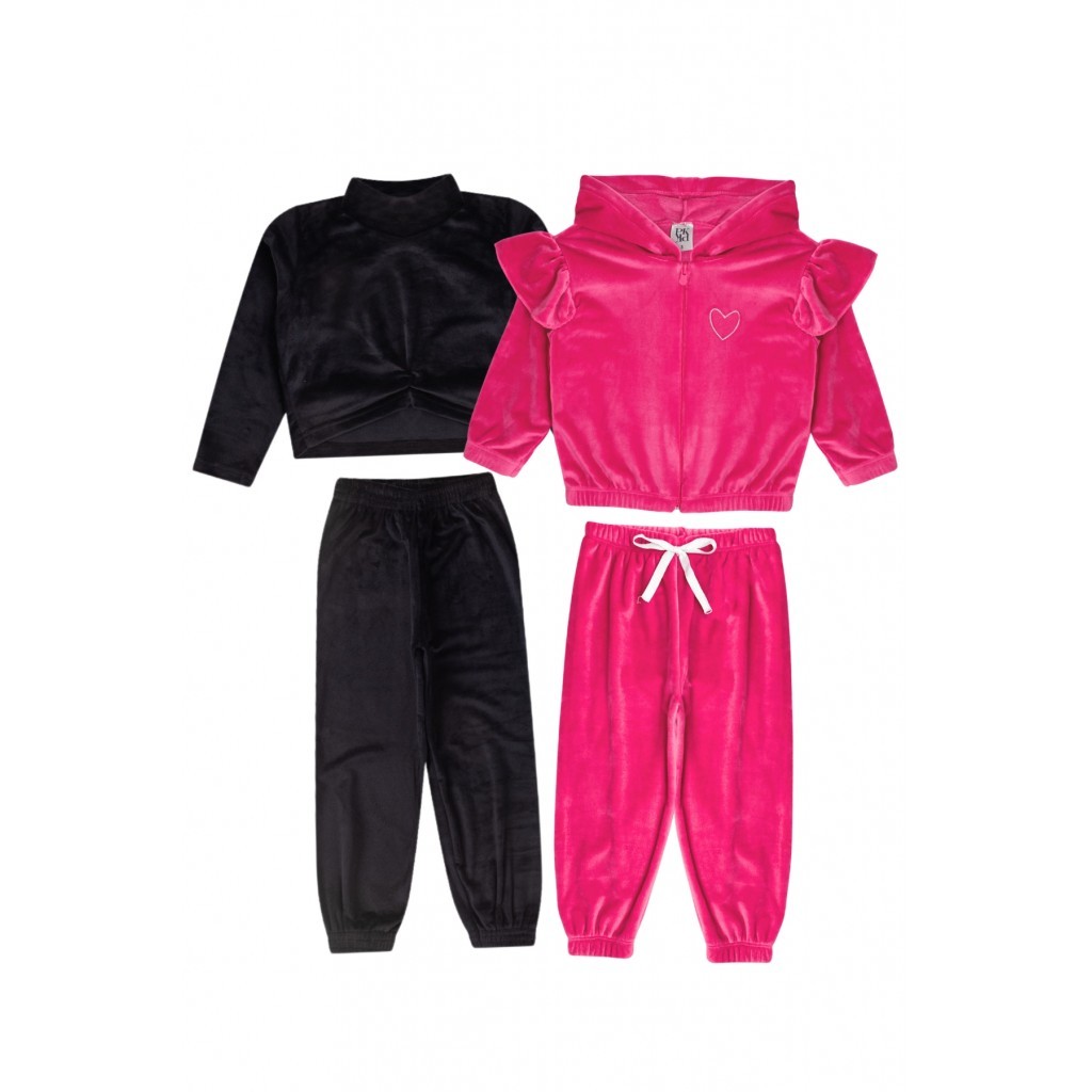Kit Sortido 4 Peças de Roupas Infantis Inverno Feminino - 2 Casacos + 2 Calças