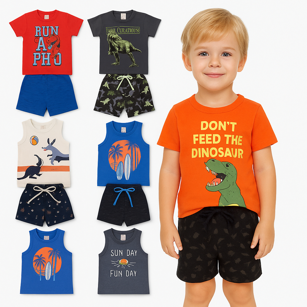 | Roupa Infantil De Menino Kit duas Peças Lançamento Camisa e Bermuda... | R$ 39,90 | — | 4.9/5 | 198 |